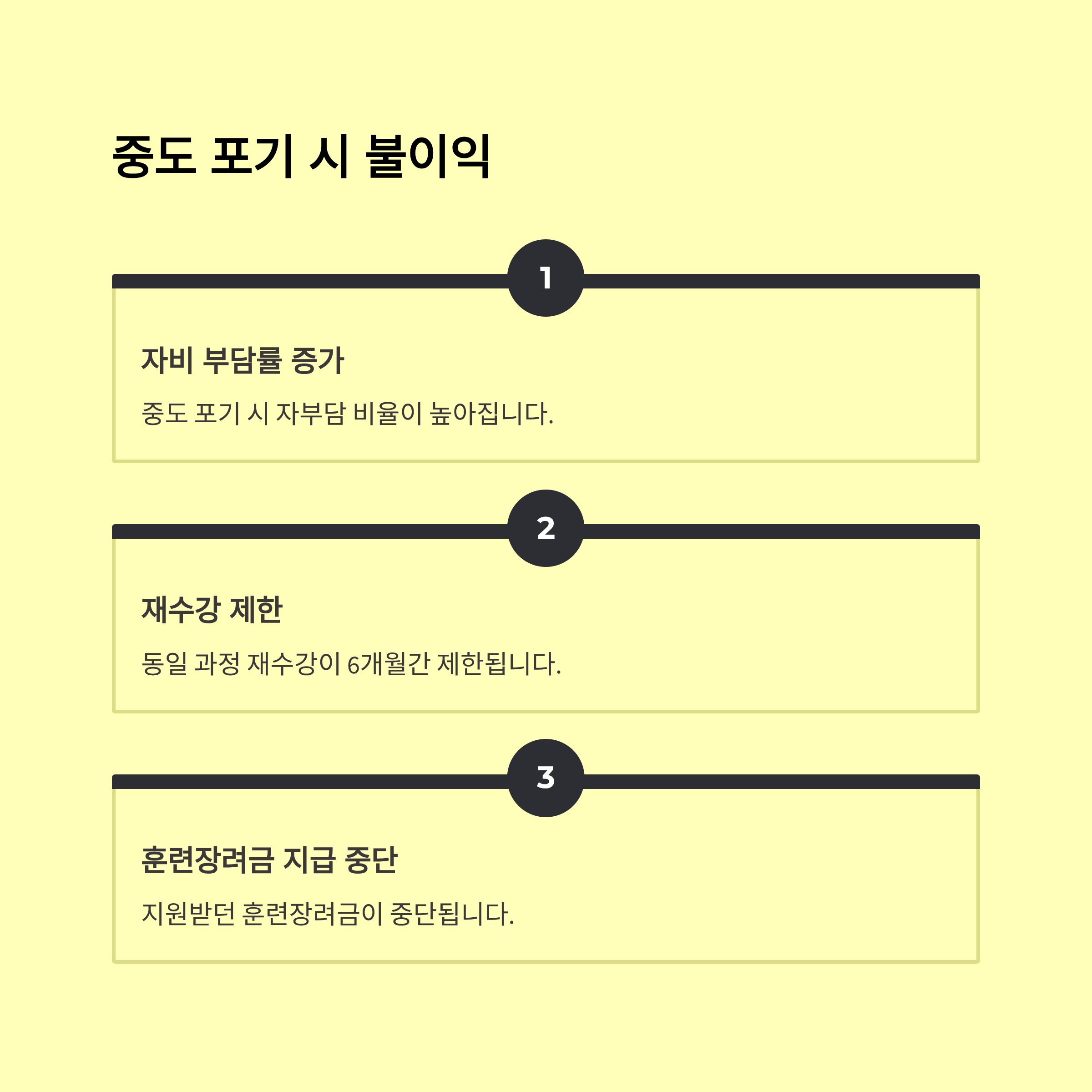 ✔ 과정을 중복으로 신청하거나 무단 수강 포기 시 다음 지원이 제한될 수 있어요. 꼭 신중하게 선택하세요!
