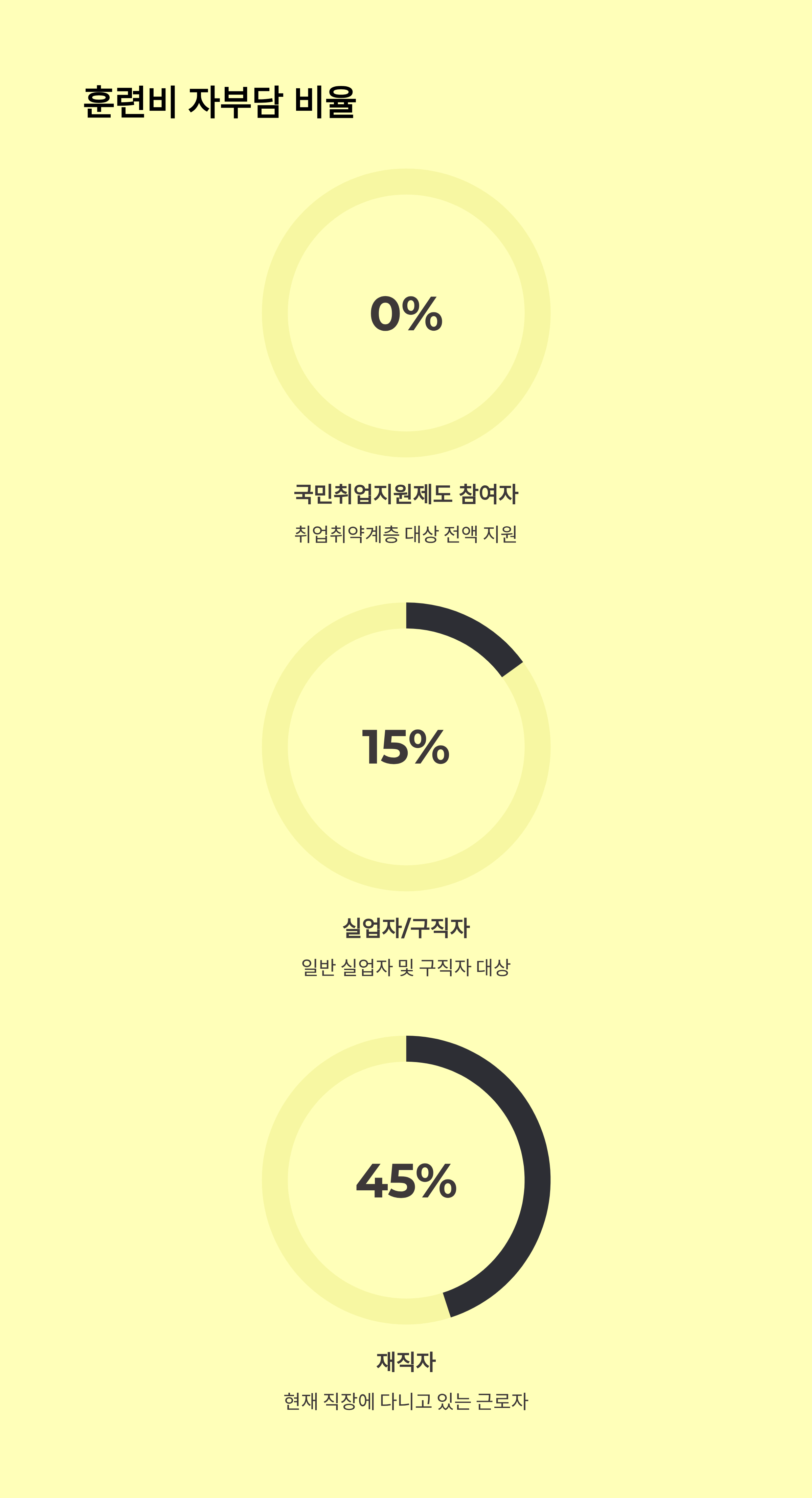 A3. 일부 과정은 전액 국비지원이고, 일부는 자비부담금이 있을 수 있어요.