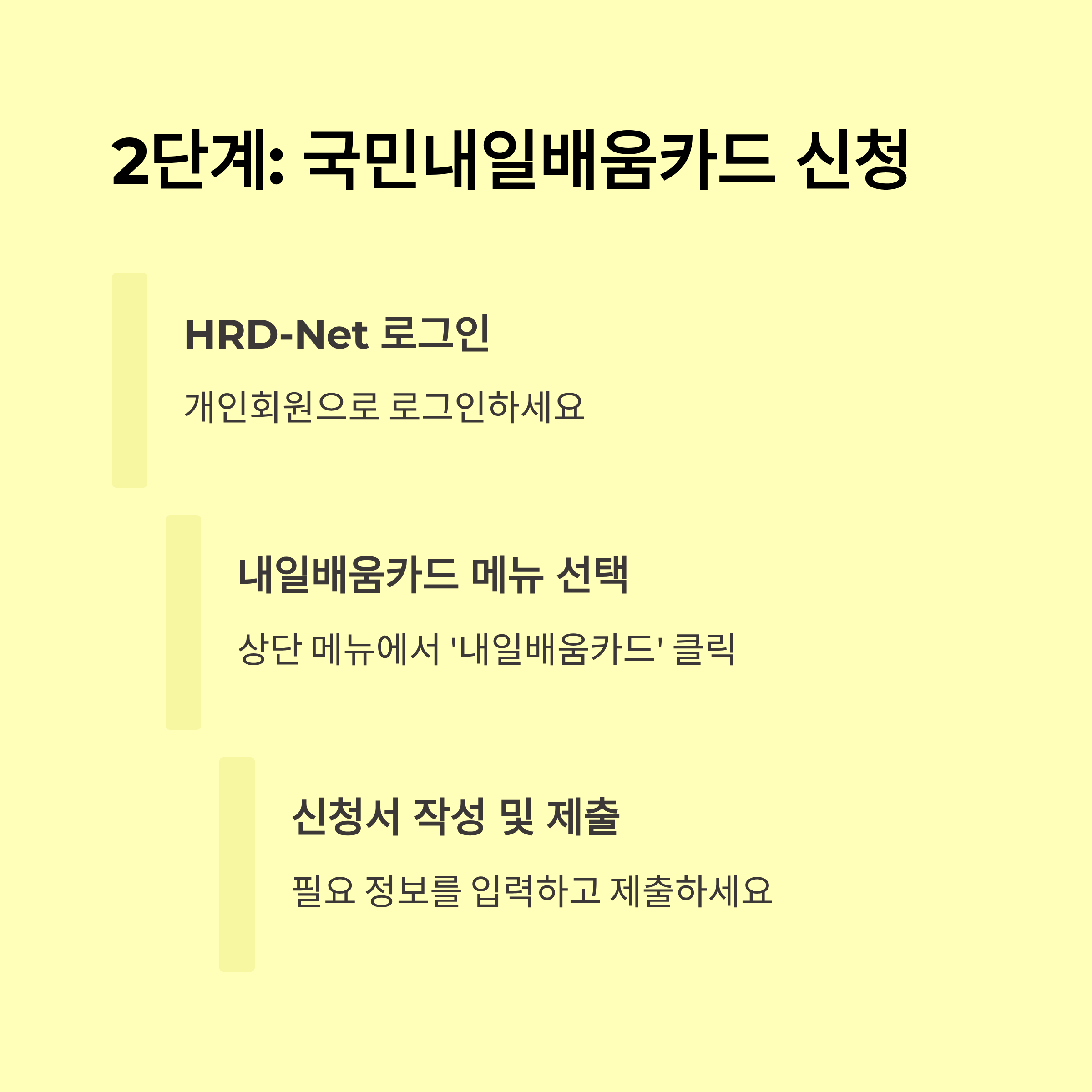 국민내일배움카드 신청은 온라인 또는 오프라인 모두 가능해요. 대부분은 HRD-Net(직업훈련포털)을 통해 신청하는 걸 추천해요. 간편하고 빠르게 처리되기 때문이에요.