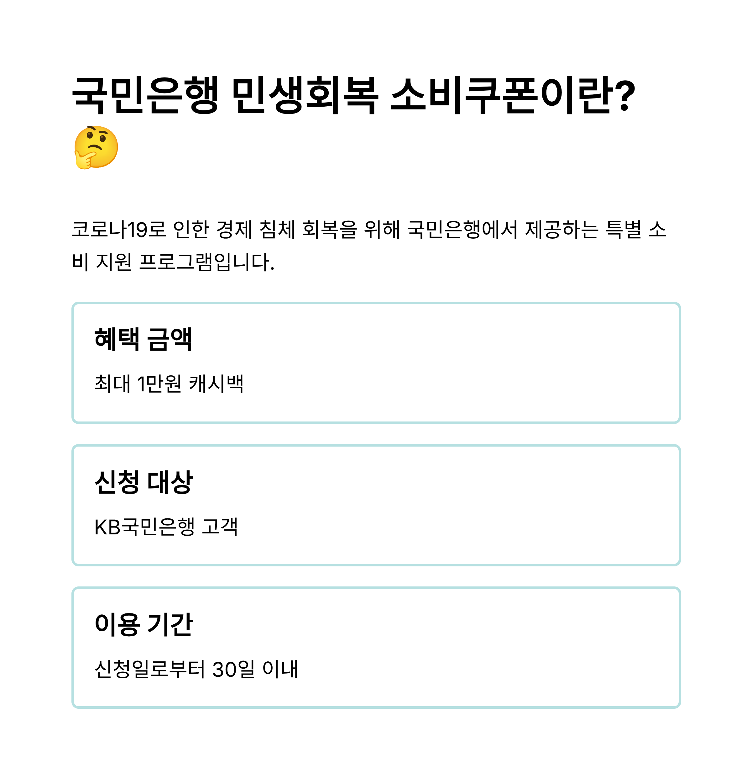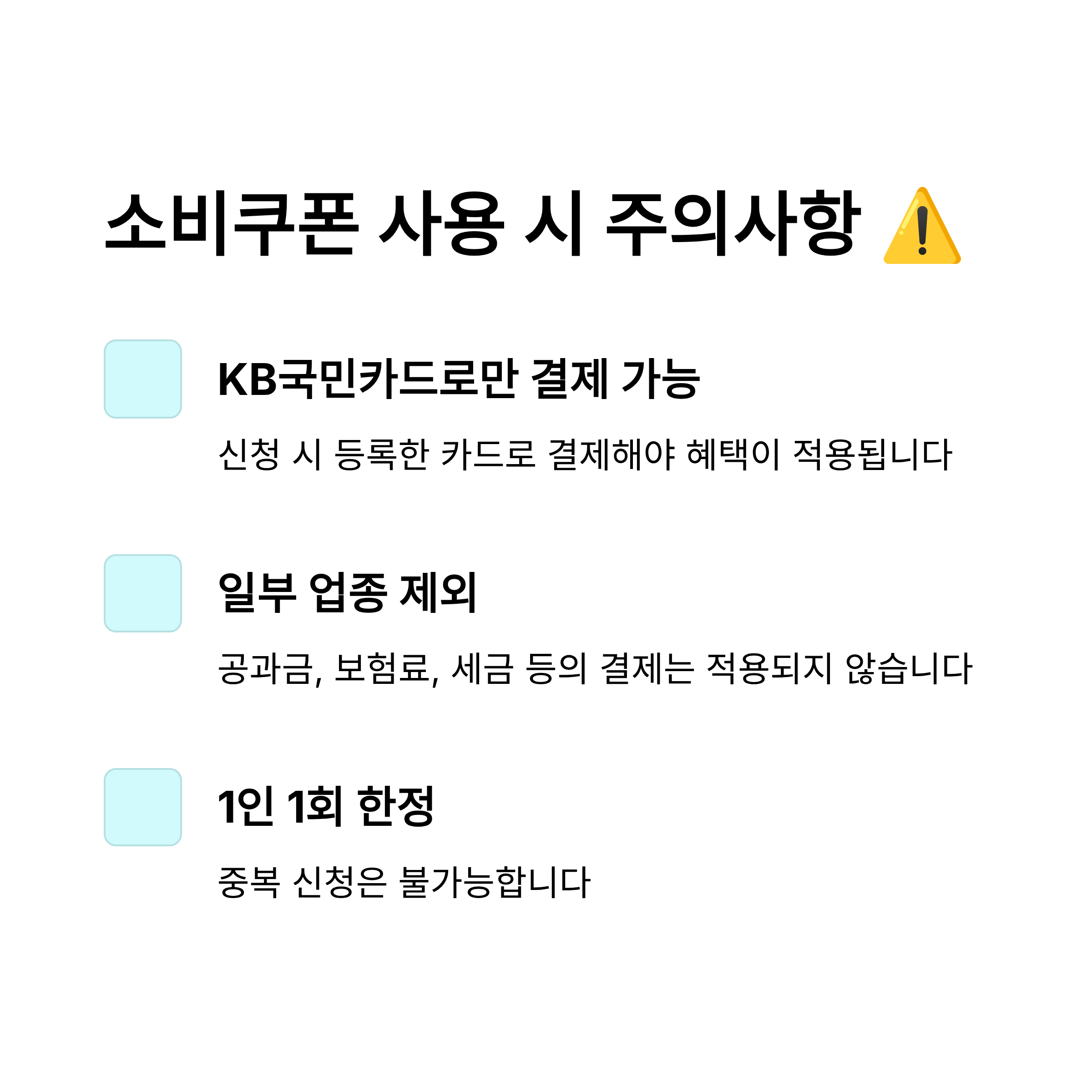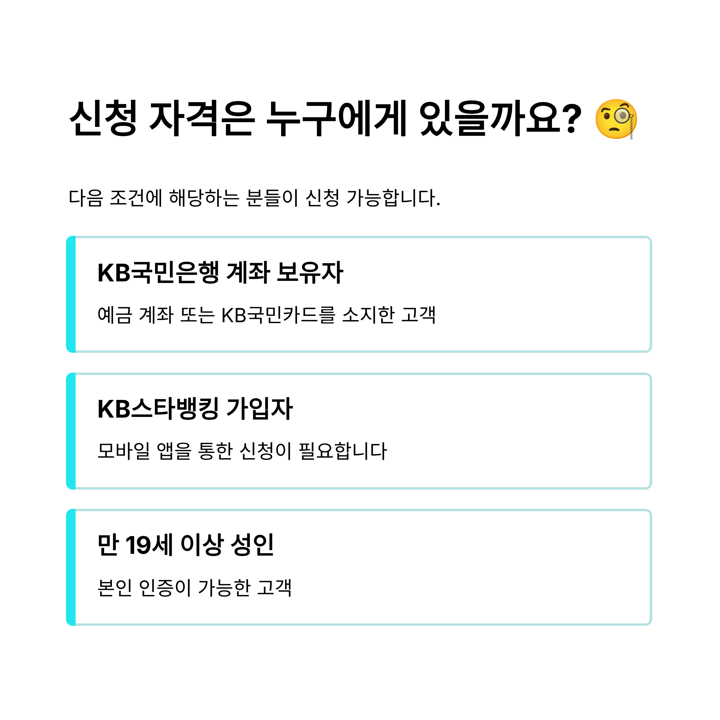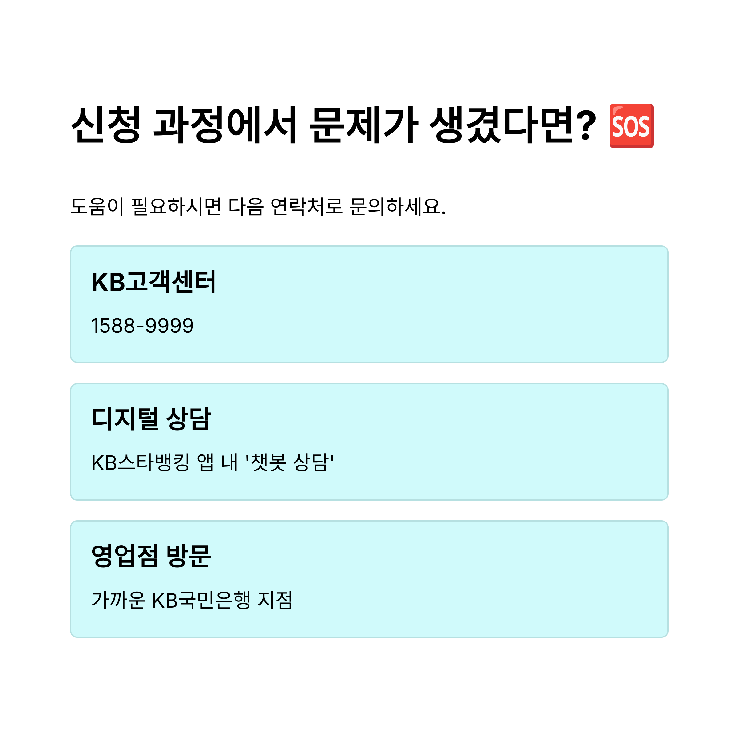 - 💳 카드 필수: KB국민은행을 통한 신청은 KB국민 신용/체크카드가 반드시 있어야 함.