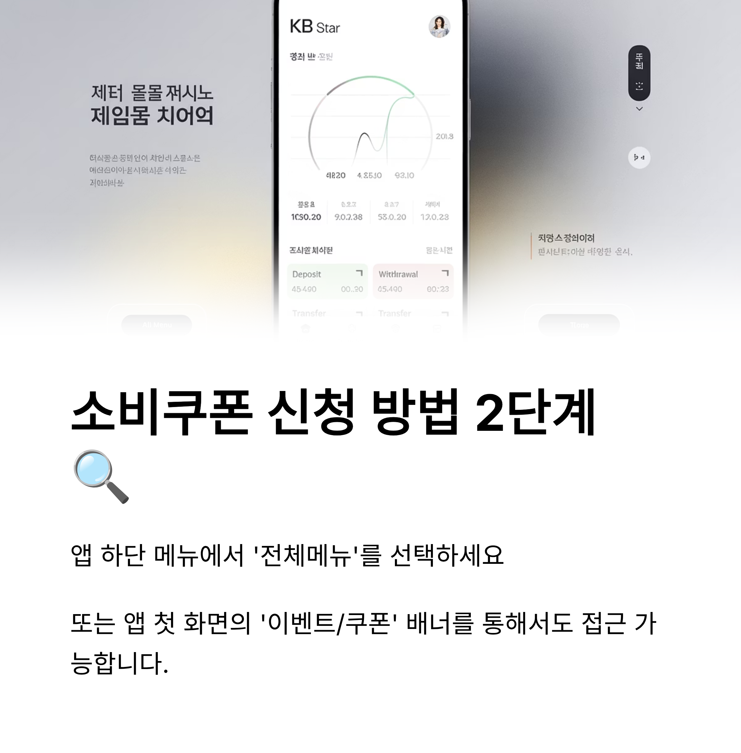 - '민생회복 소비쿠폰' 배너 클릭: 앱 메인 화면에 보이는 '민생회복 소비쿠폰 신청' 또는 '정부지원금' 관련 배너를 찾아 클릭합니다.