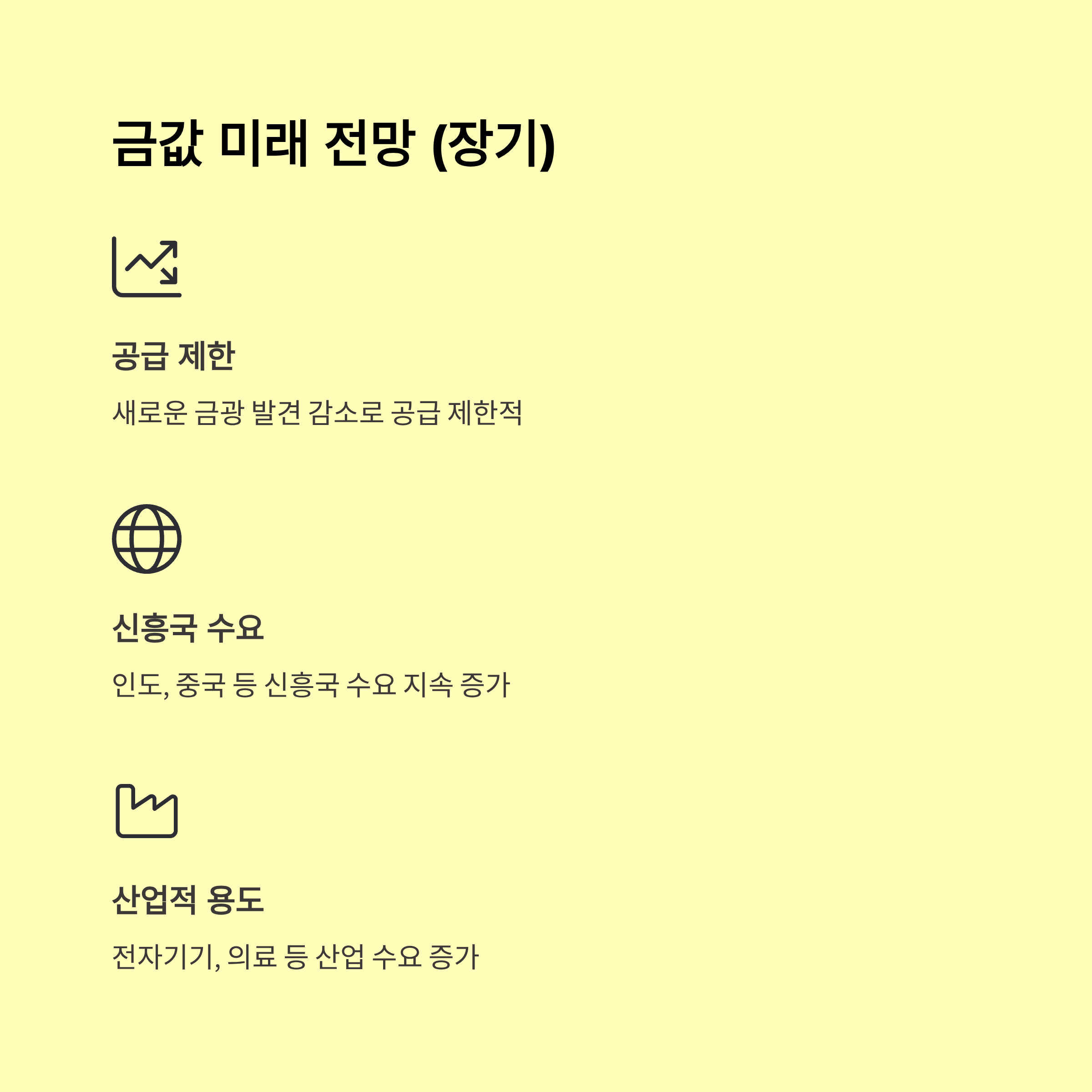 A. 국제 경제, 신흥국 수요, 정치 변수, 공급 리스크(신규광산 성공/실패) 등에 따라 중장기 변동성 커질 전망이며, 2026~2027 온스당 $2,850~$3,050 전망하는 기관 다수.