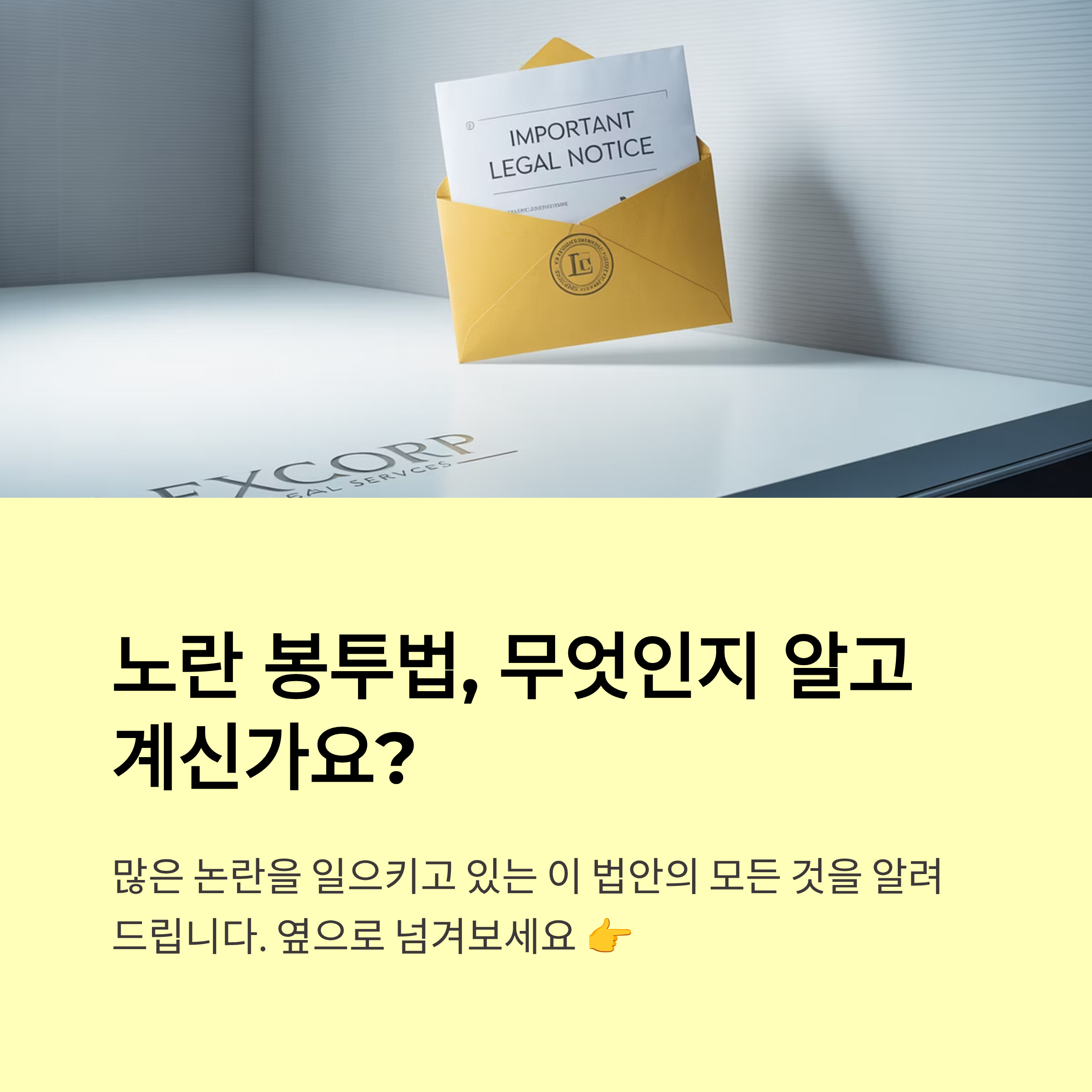 노동권과 경영권 충돌의 핵심, 노란봉투법. 무엇이 문제이고 왜 이렇게 뜨겁게 논쟁되는지, 이 한 편에 모두 담았습니다.