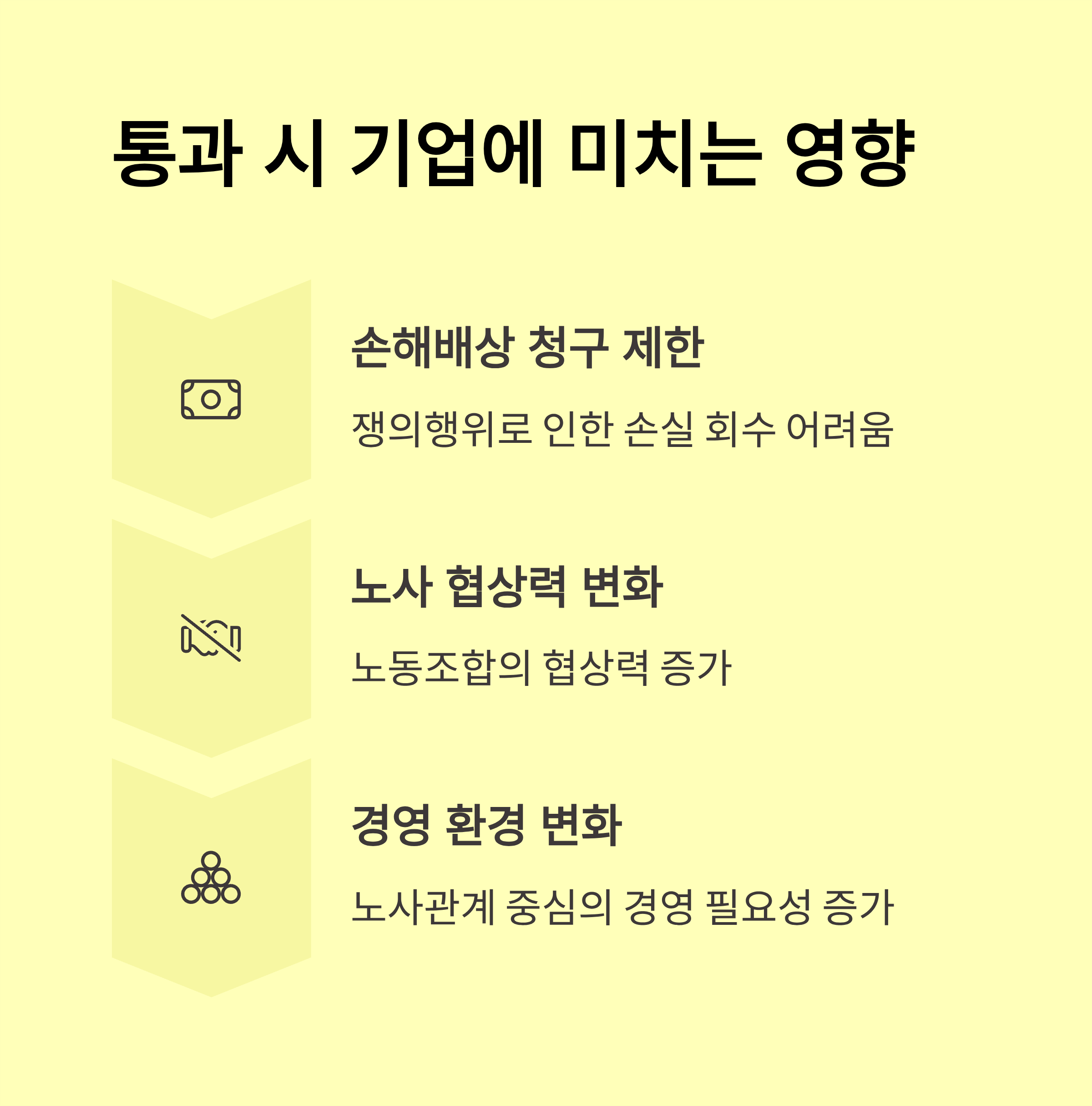 - 사회 영향: 산업현장 분쟁 증가, 외국인 투자 감소 가능성 논의