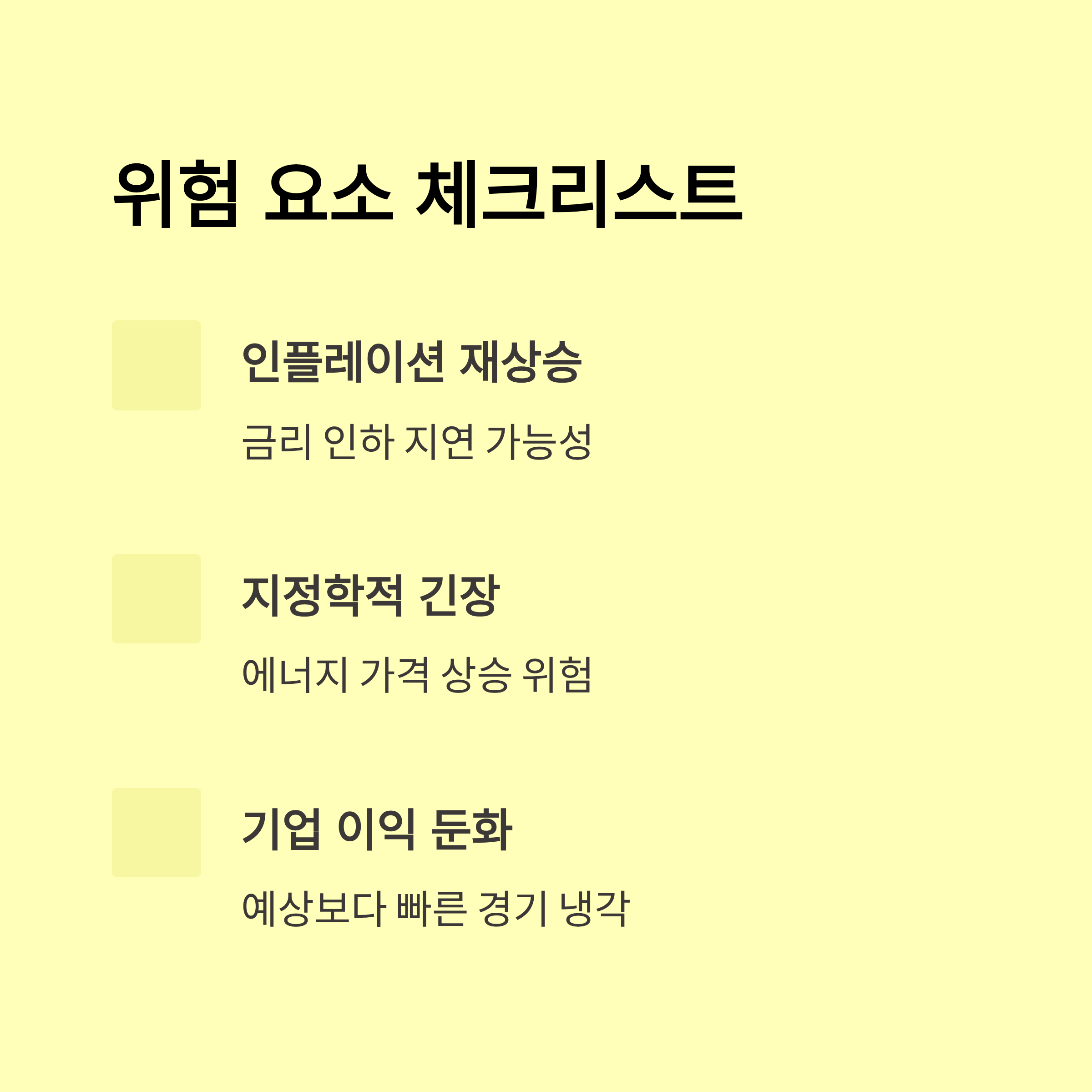 – 지나친 테마/성장주 쏠림 피하고, 실적주·방어주·AI/국방/리쇼어링주 선별, 적정 현금보유+뉴스 체킹. - Q. 미국 금리/연준 정책, 추가 변수?