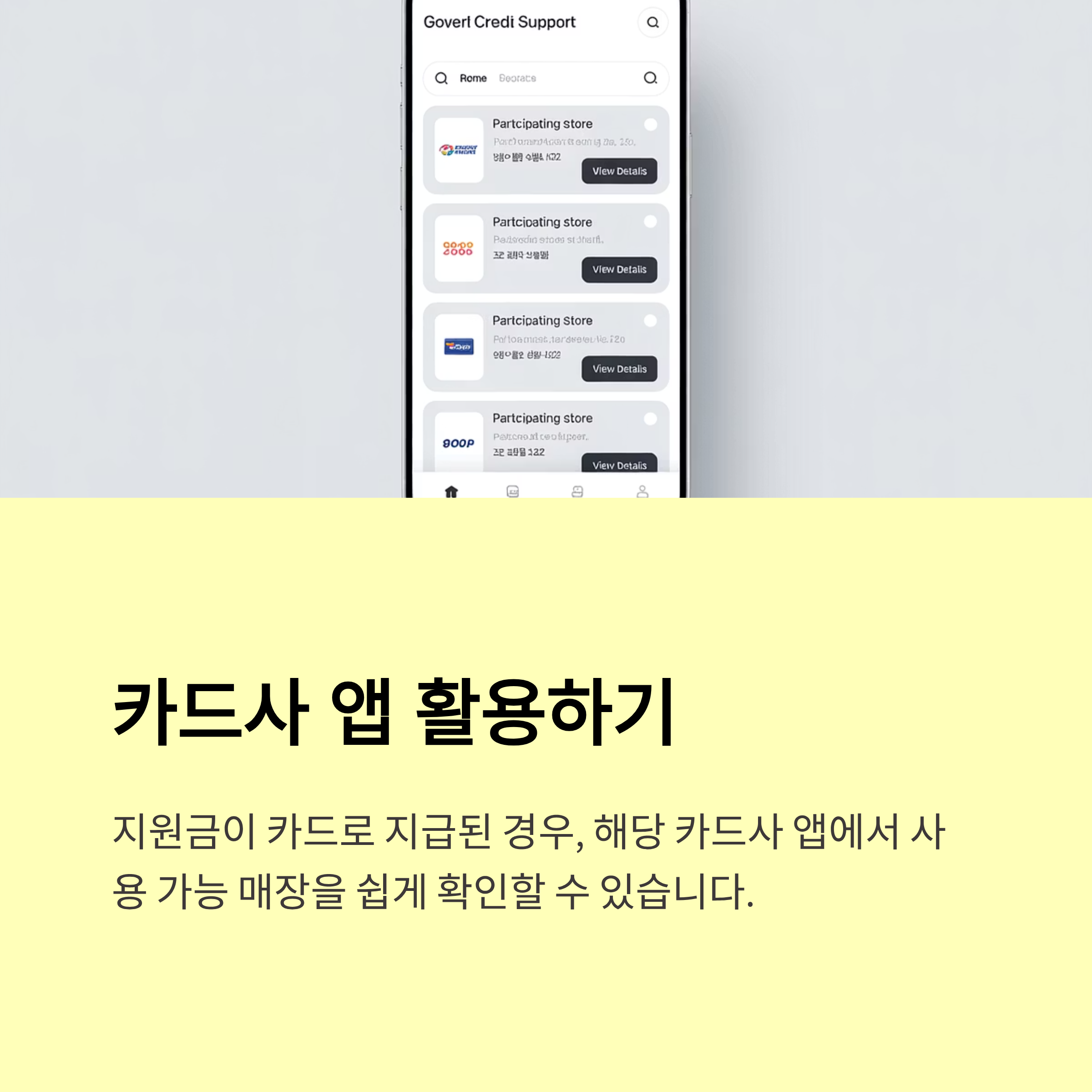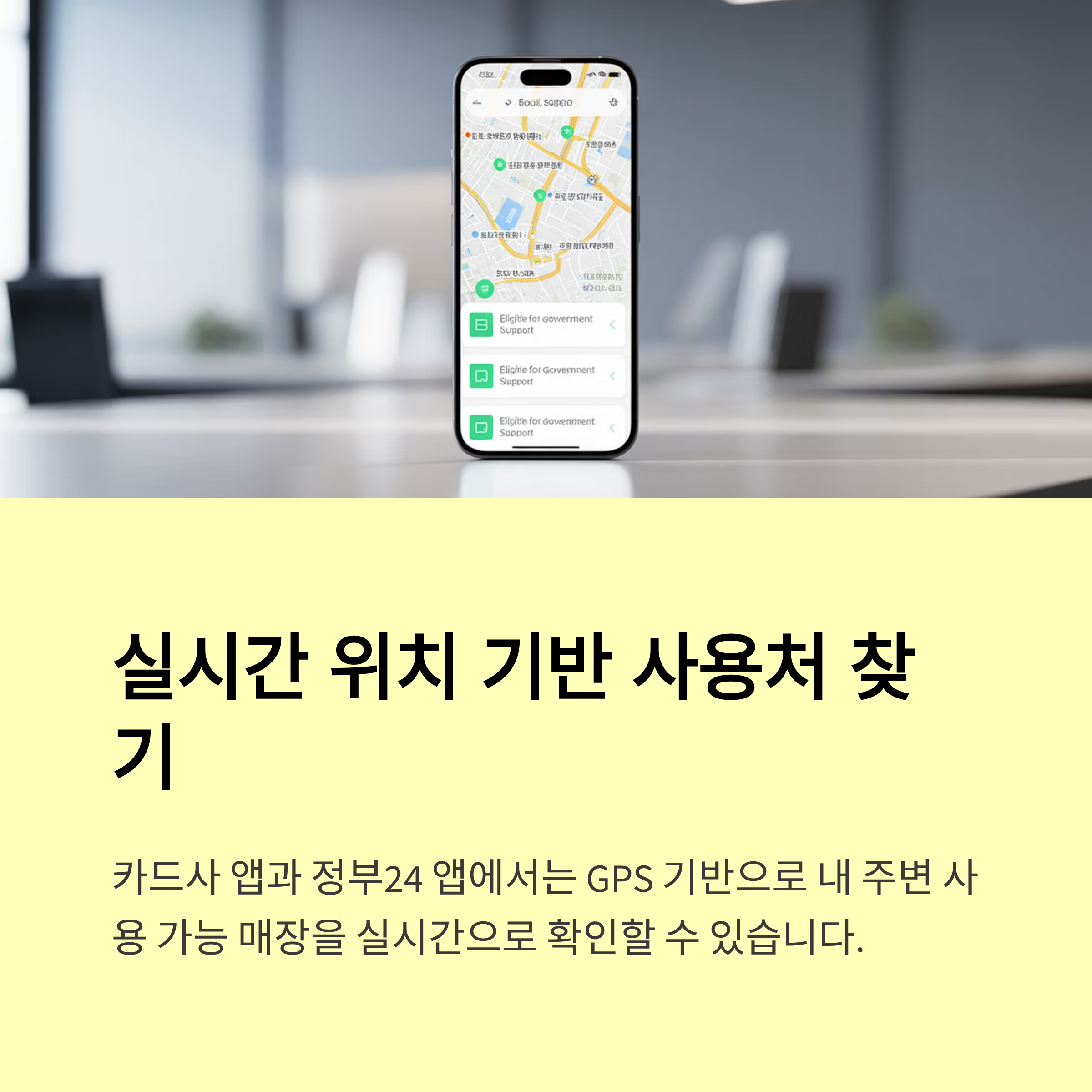 요즘 시대에 가장 스마트하고 정확한 방법입니다. 내가 지원금을 충전받은 카드사 앱이나 지역화폐 앱을 이용하면, 내 주변 사용처를 지도로 한눈에 보거나 목록으로 검색할 수 있습니다.