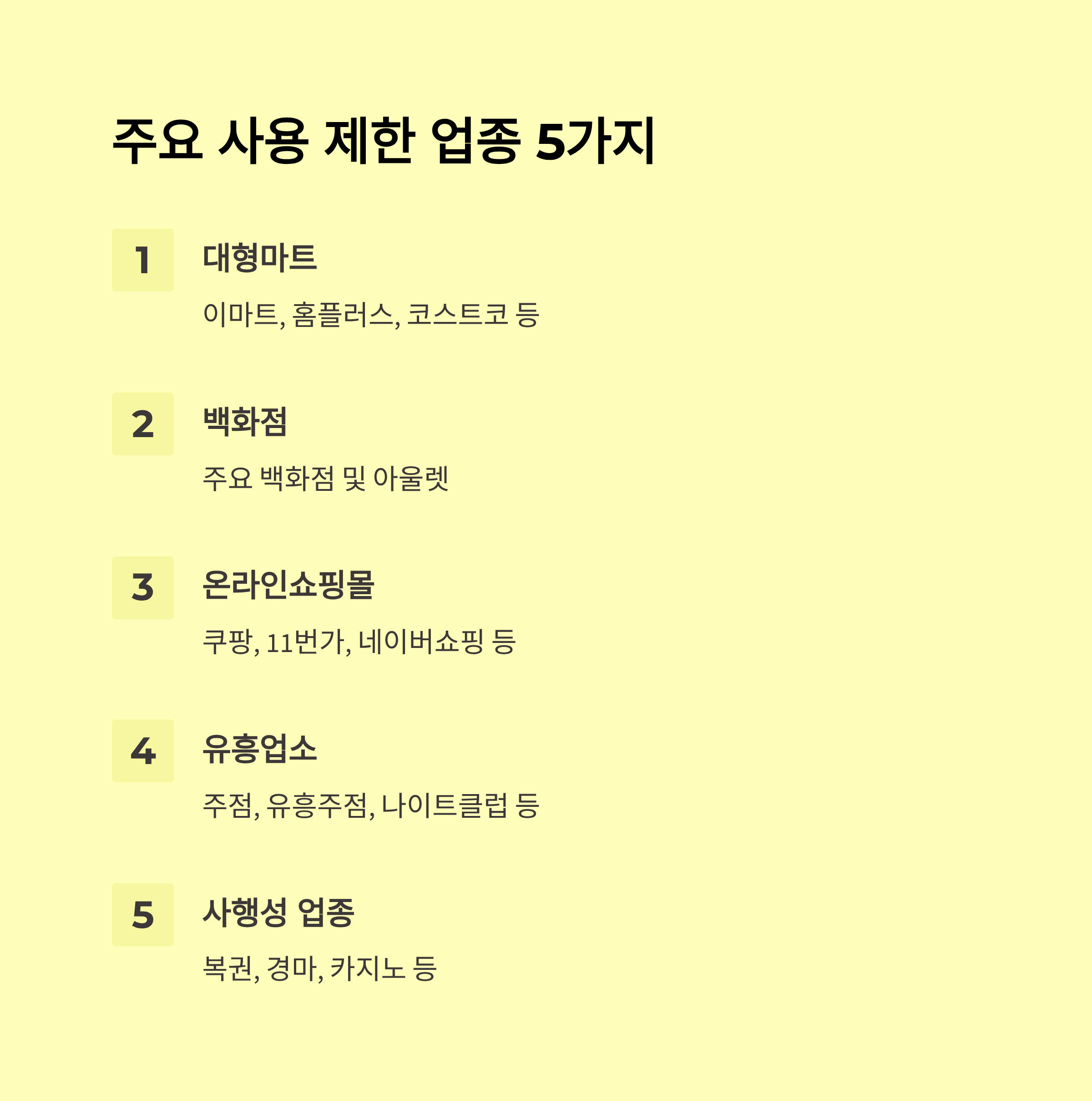 아래 장소에서는 지원금 사용이 불가능하니, 괜히 카드 내밀었다가 민망해지는 상황을 미리 방지하세요!