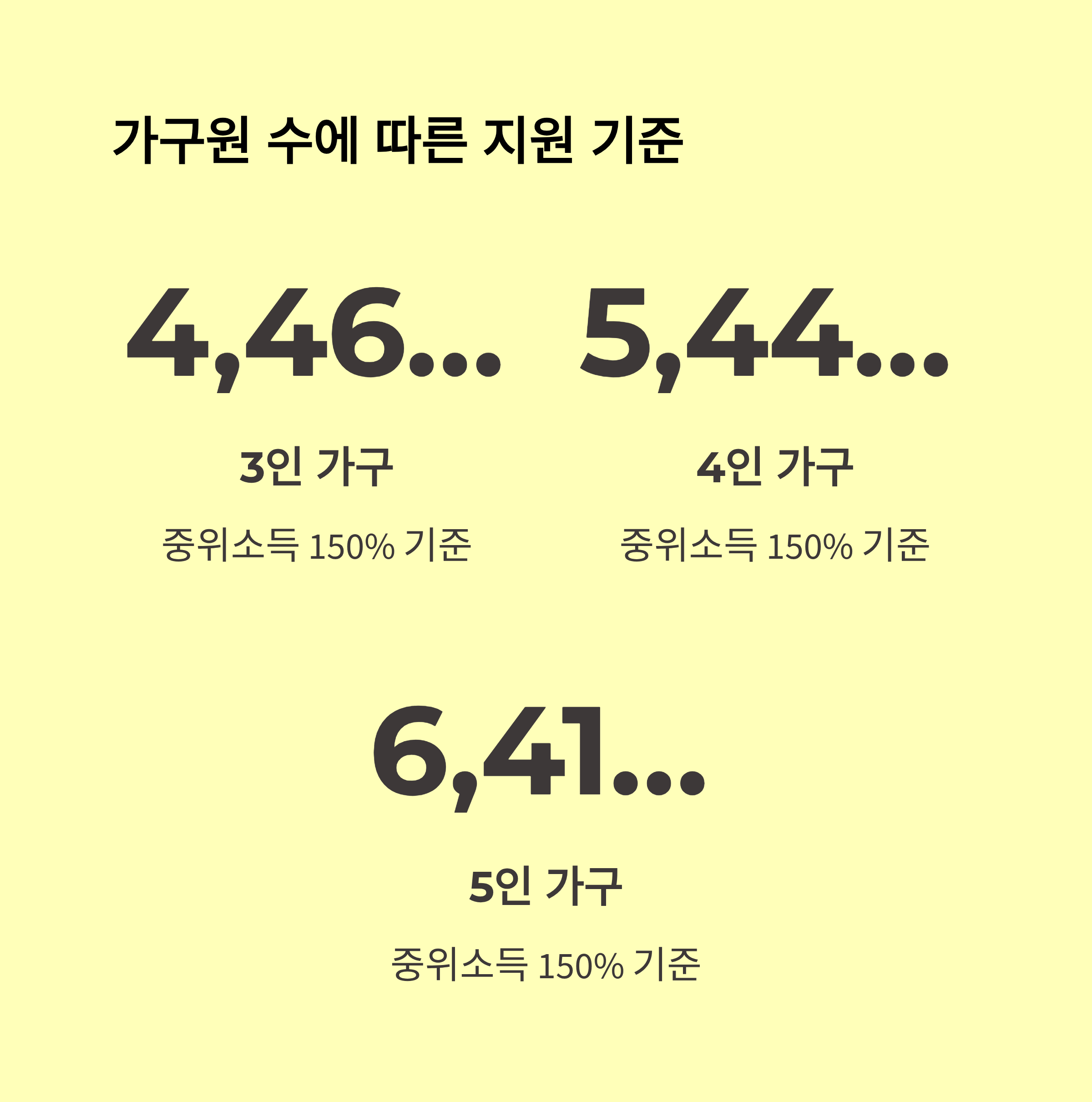 A6. 가구 단위로 계산돼요. 부양 가족 수에 따라 금액도 달라져요.