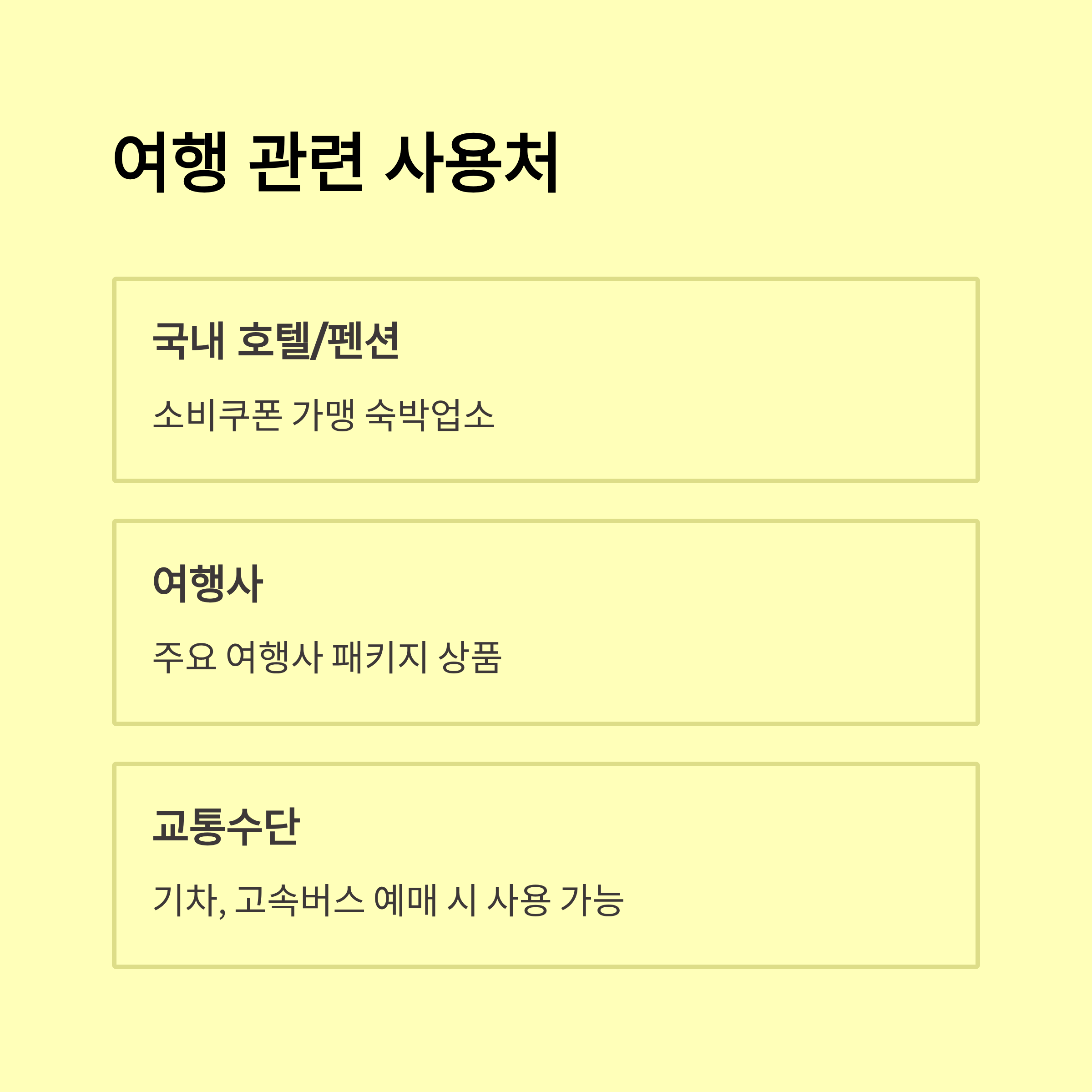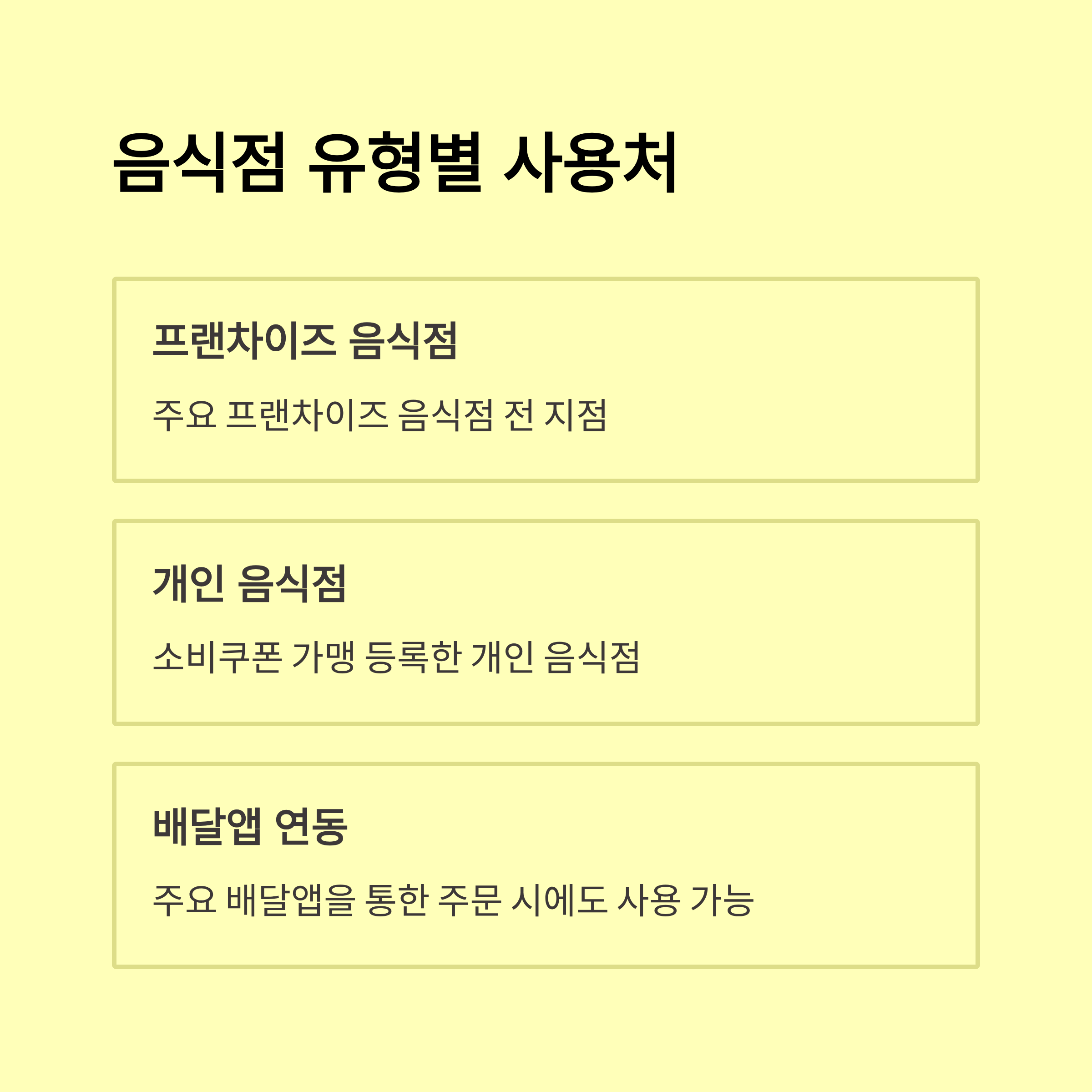 쿠폰 사용처는 분야별로 다양해요. 아래는 대표적인 사용 가능 분야예요.