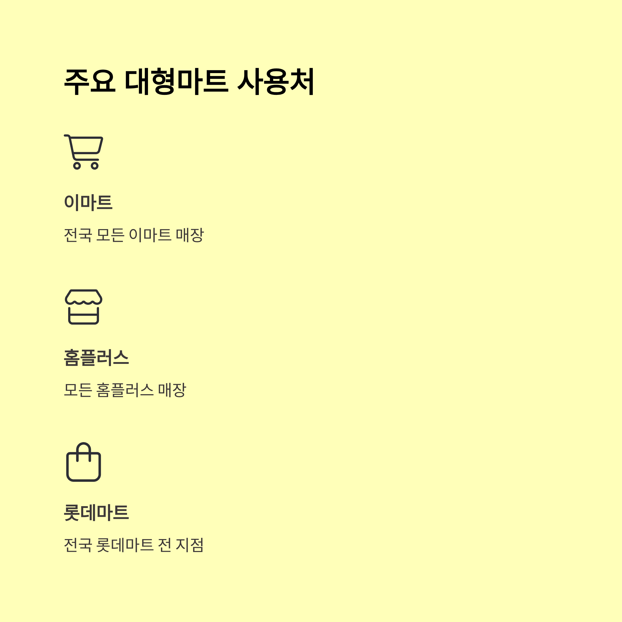 - 🏬 대형마트(이마트, 롯데마트, 홈플러스 등)