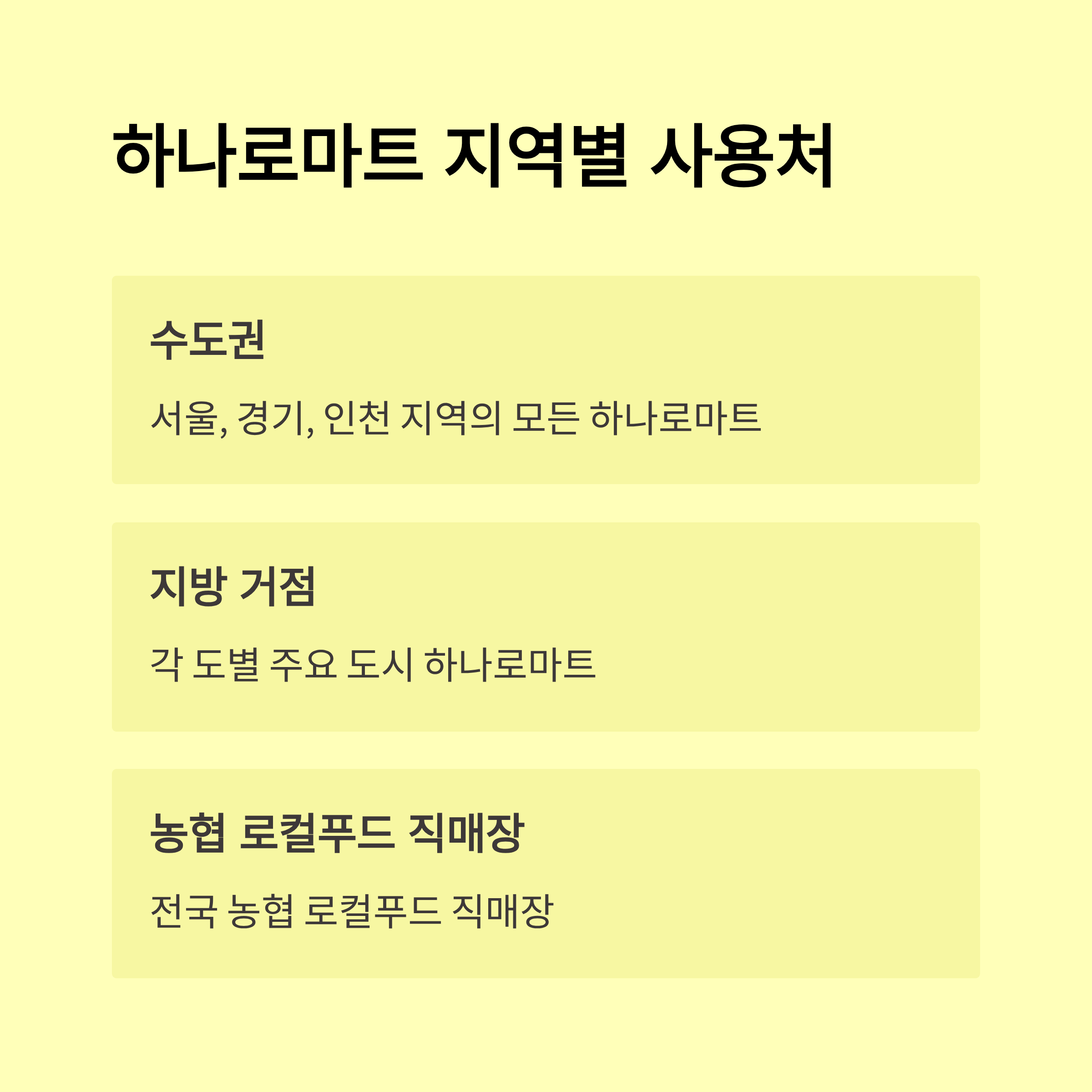 즉, 지역 농·축협이 운영하는 소형 하나로마트에서는 사용 가능하니, 사용 전 꼭 점포별 가맹 여부를 확인해야 해요.