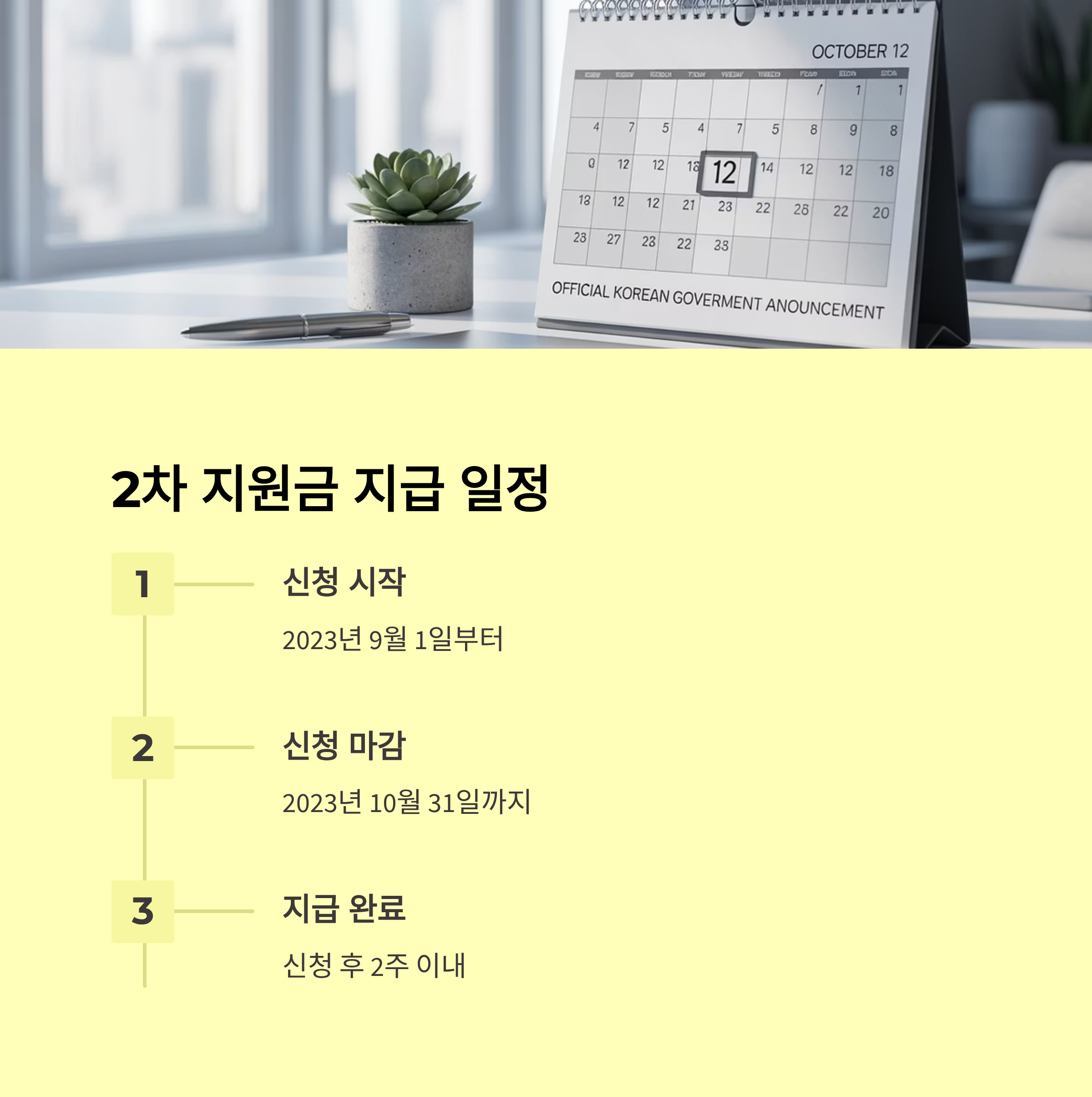 - 2025년 9월 22일부터 10월 31일까지 신청 및 지급이 이루어집니다. - 누가 2차 지원금을 받을 수 있나요?