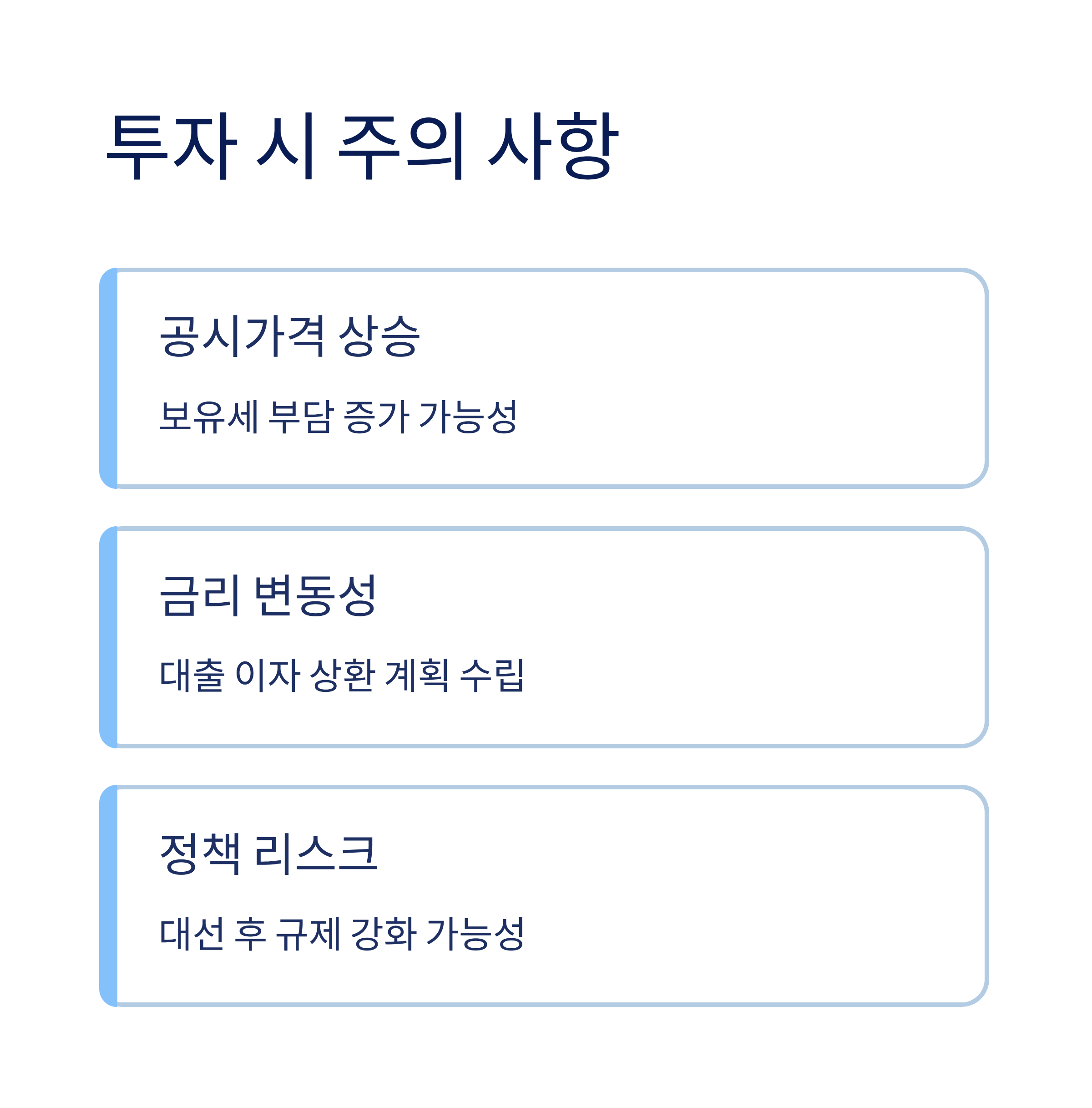 - 수도권은 신도시, 복합환승역 인근 집중, 지방 대도시는 인구 감소와 공가 해소 대책 추가 필수