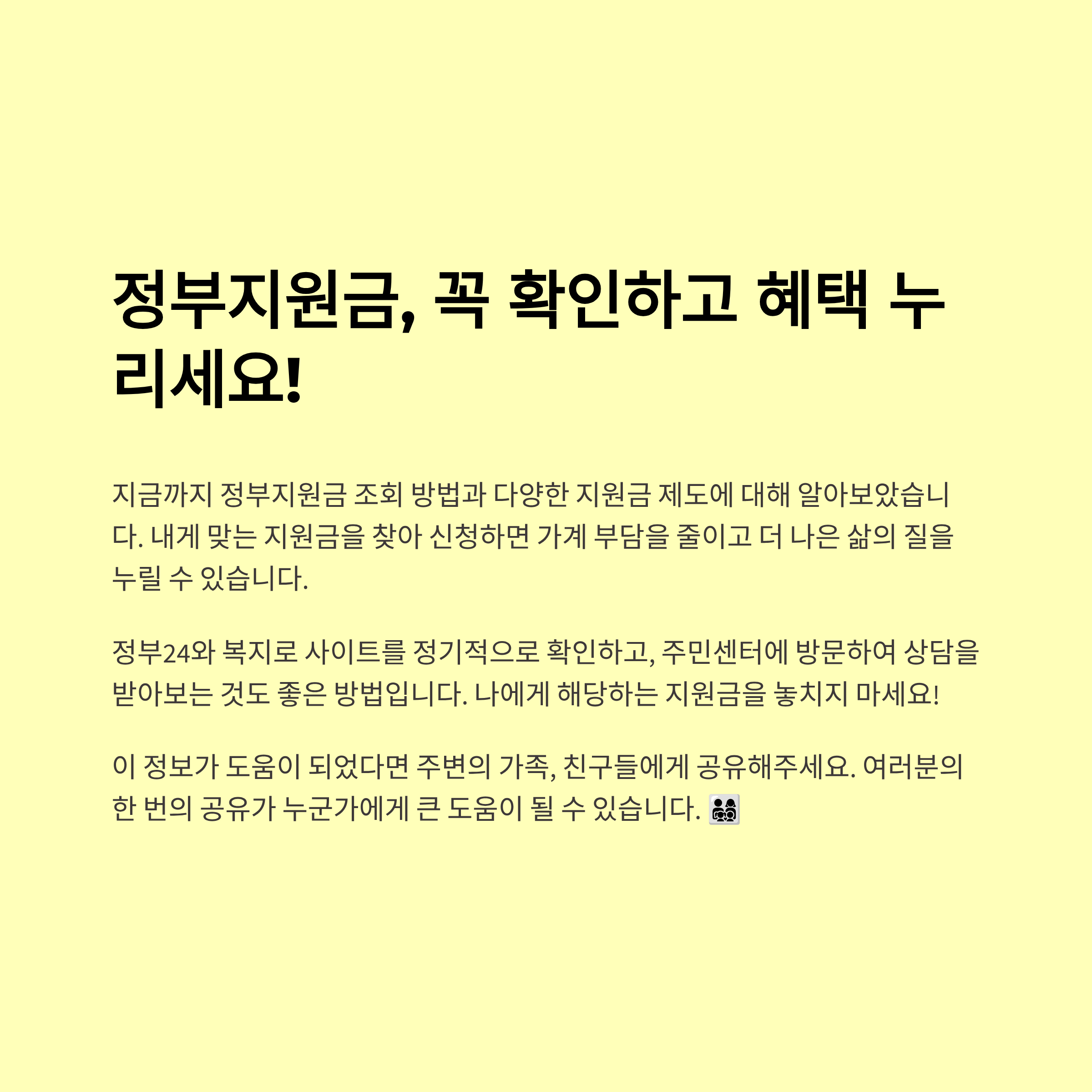 더 이상 "나는 왜 아무것도 못 받지?"라며 억울해하지 마세요. 오늘 제가 알려드린 방법으로 여러분의 소중한 권리를 100% 찾아가시길 바랍니다. 분명 생각지도 못했던 지원금이 여러분을 기다리고 있을 겁니다.