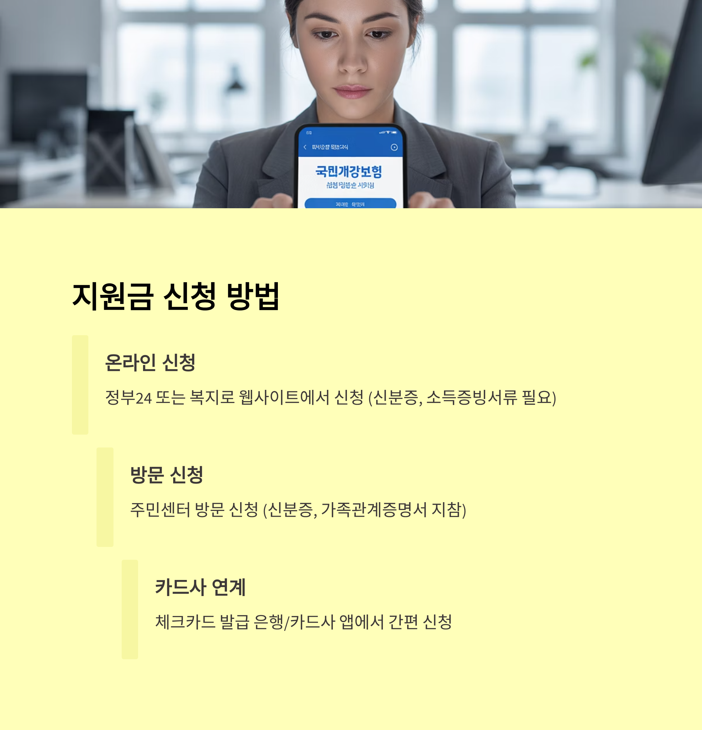 ✅ **지원 대상**: 개인 체크카드 소지자라면 누구나 신청 가능해요. 소득, 나이, 직업 전혀 상관없습니다!