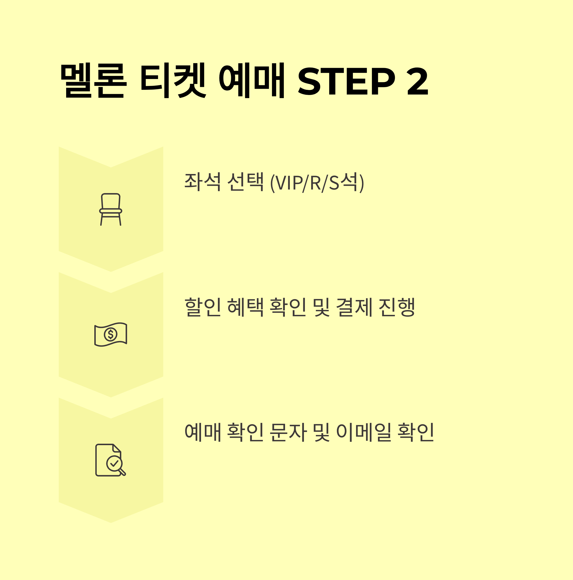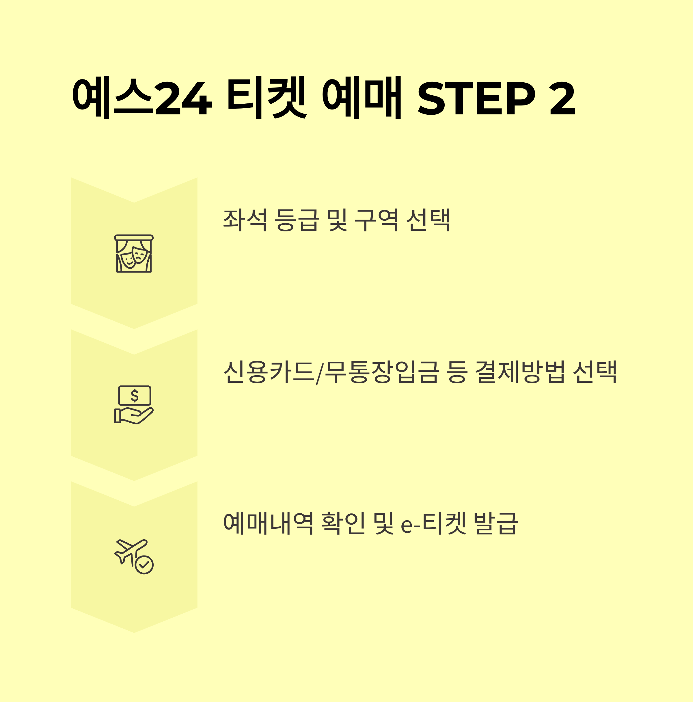 - 예매 순서: 공연 선택 → 날짜·회차 선택 → 좌석도에서 좌석선택 → 결제