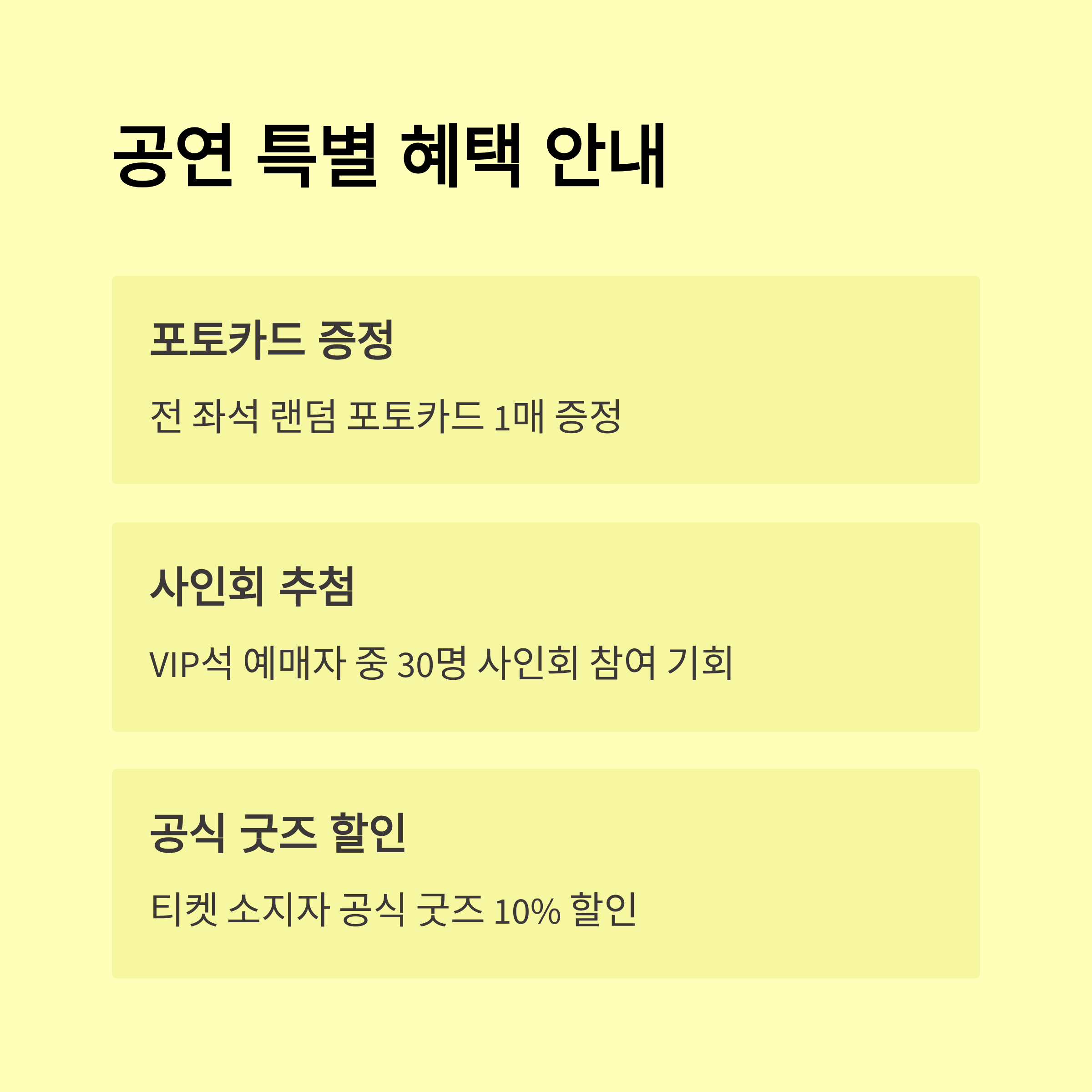 | VIP석 | 150,000 | 무대 근접 / 기념품 포함 |