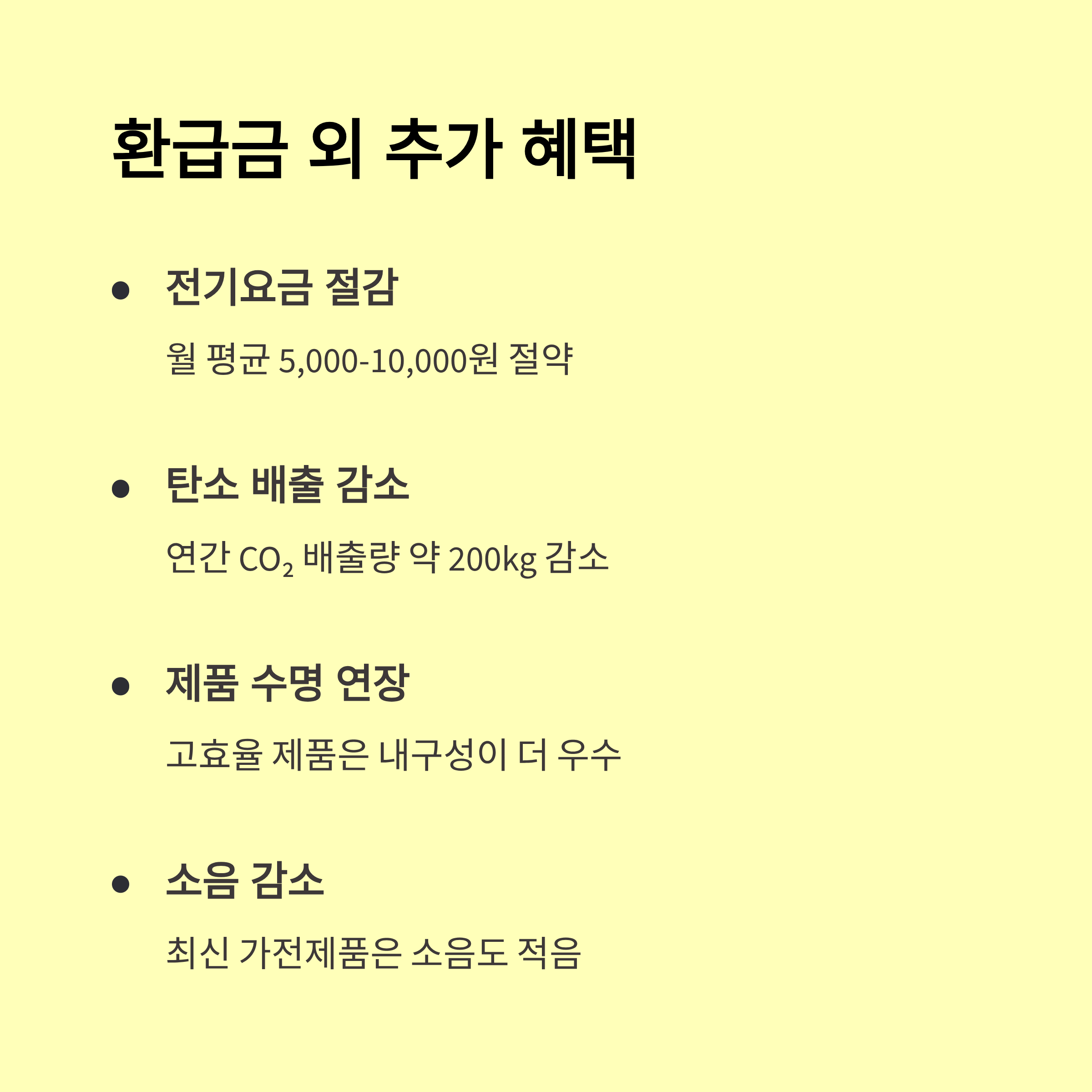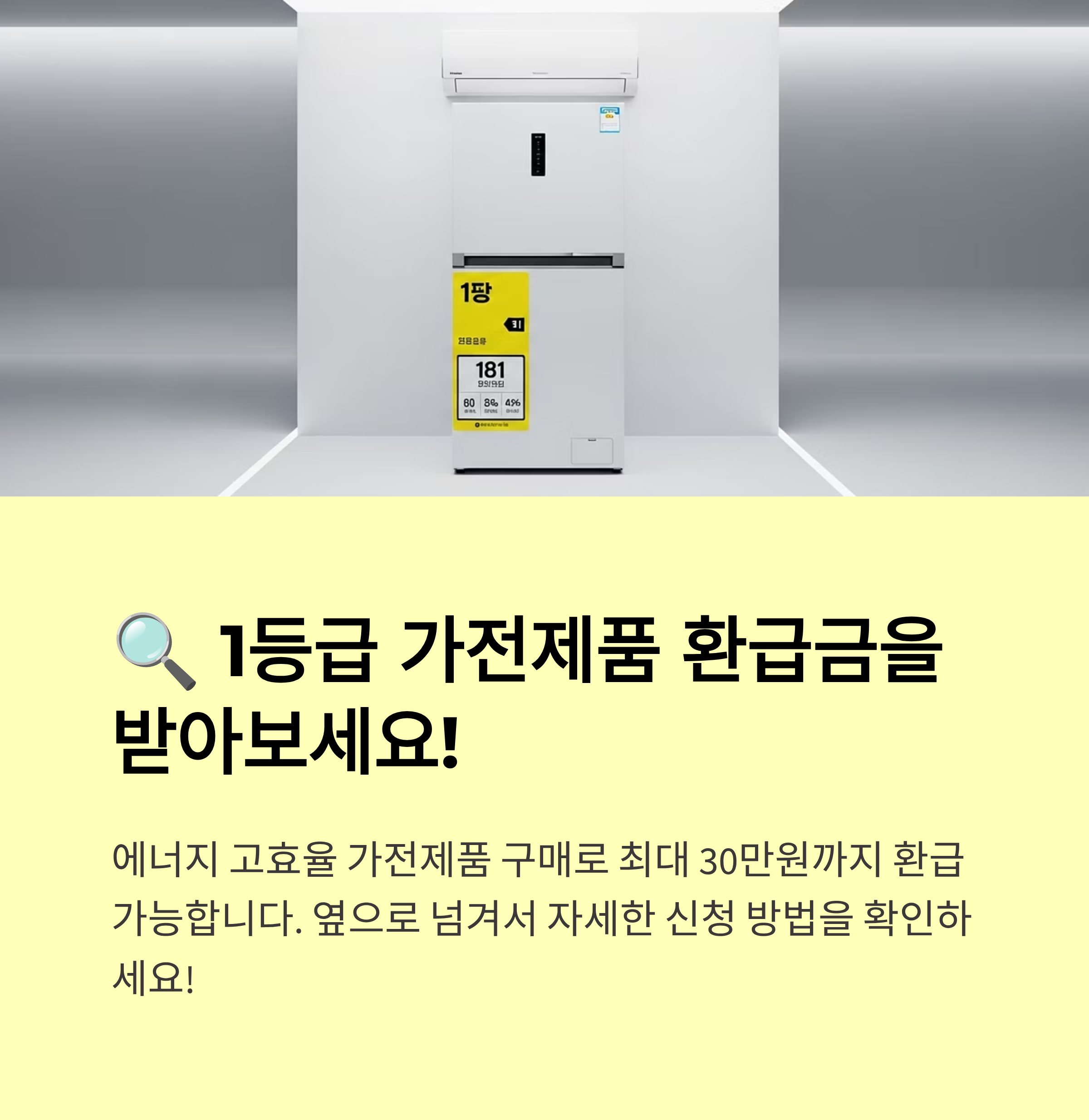 - 대상: 2025년 인증받은 에너지효율 1등급 가전 구매자 (냉장고, 세탁기, 에어컨, 공기청정기 등)