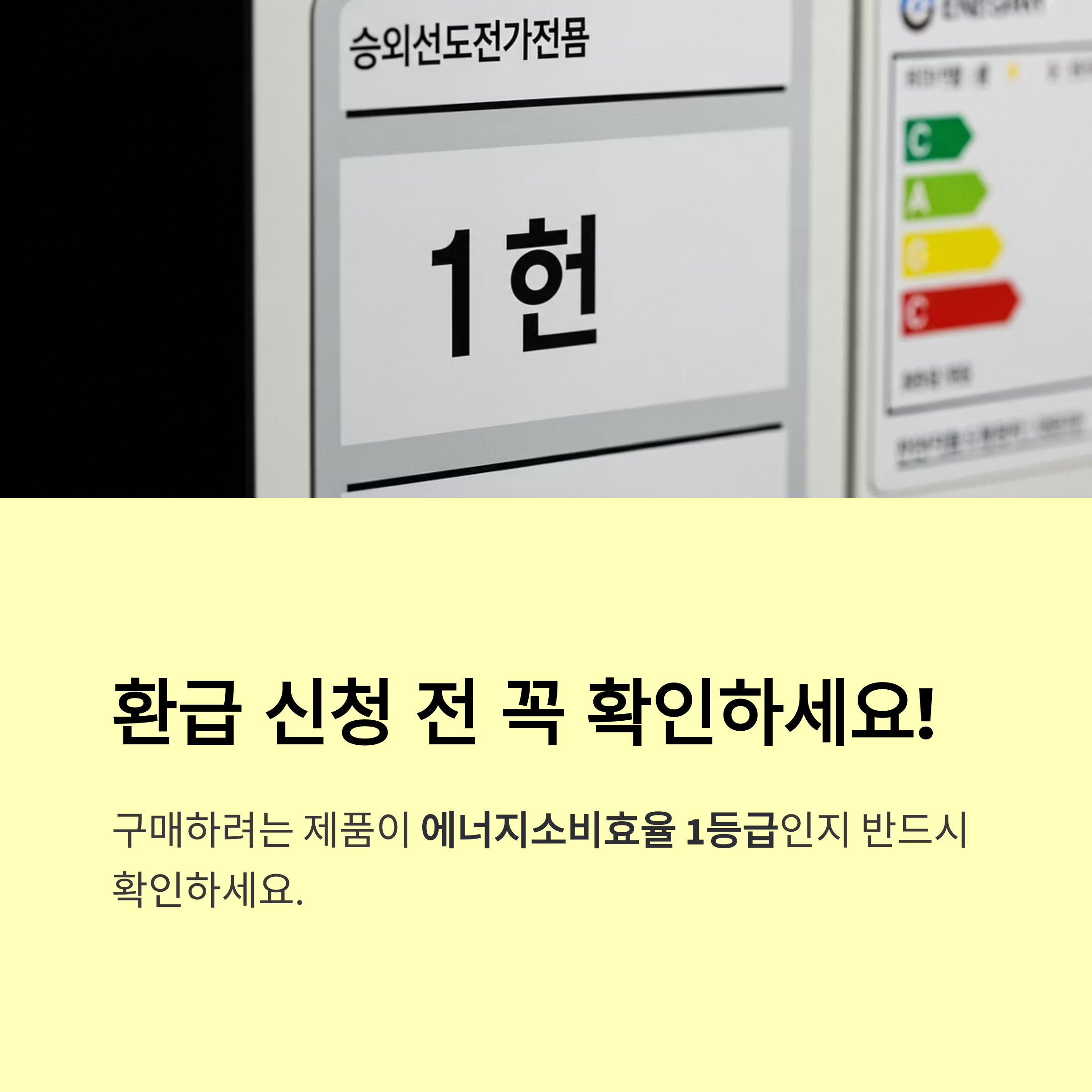 • 2025년 에너지 소비효율 1등급 등급표가 부착된 가전제품만 환급 대상