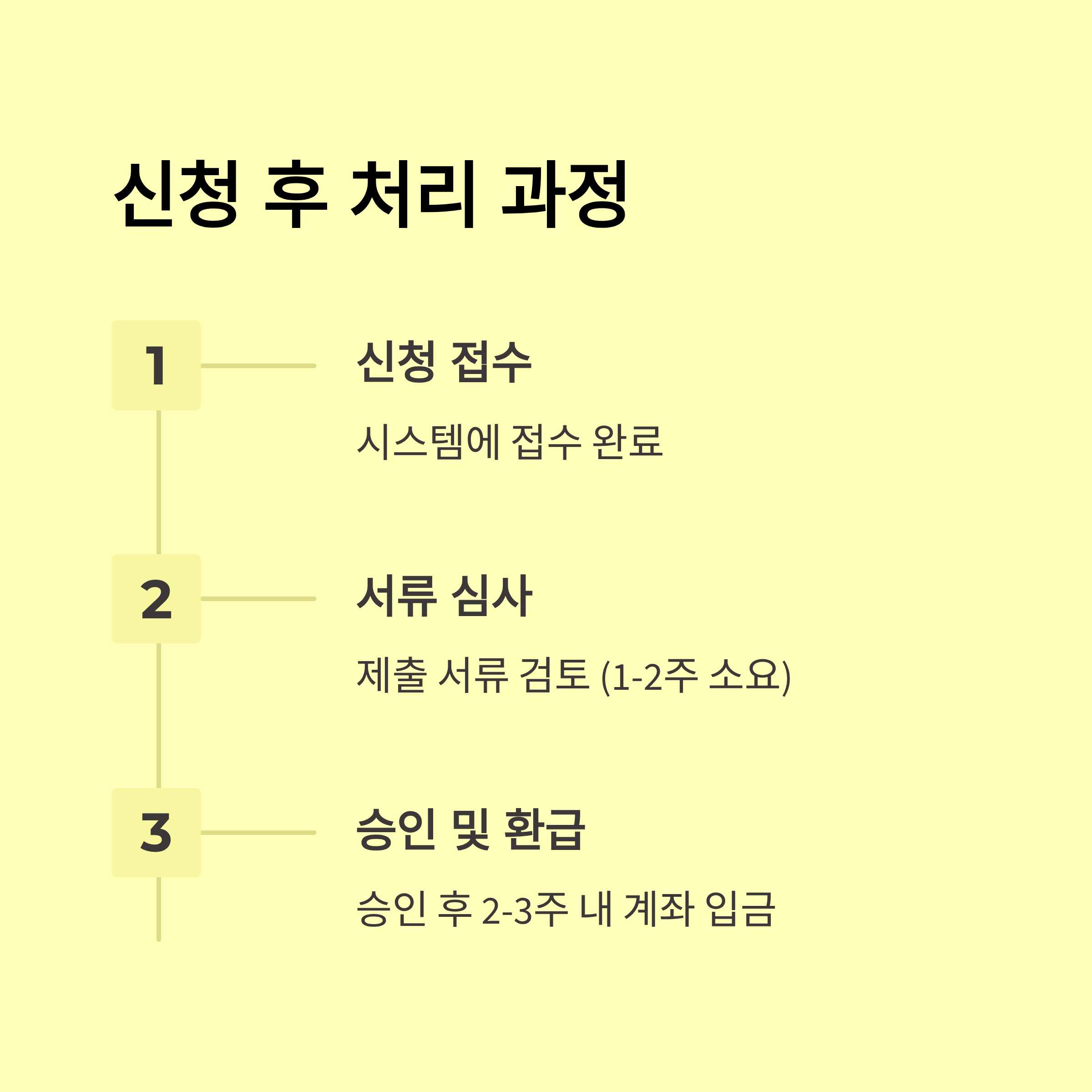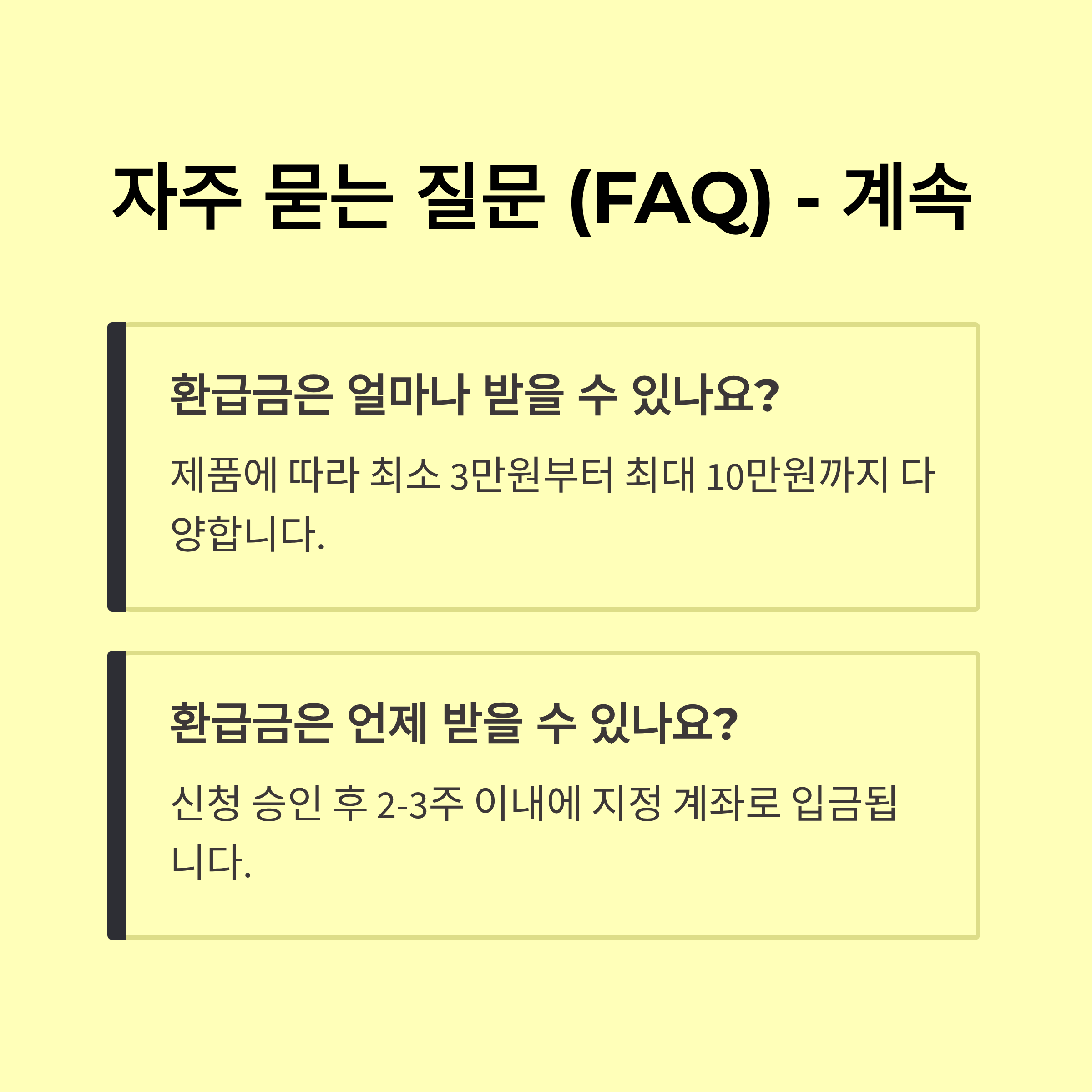 • 환급금 지급: 심사 후 보통 1~3주 이내 지정 계좌 입금 (마감시 대기/이월 안내)