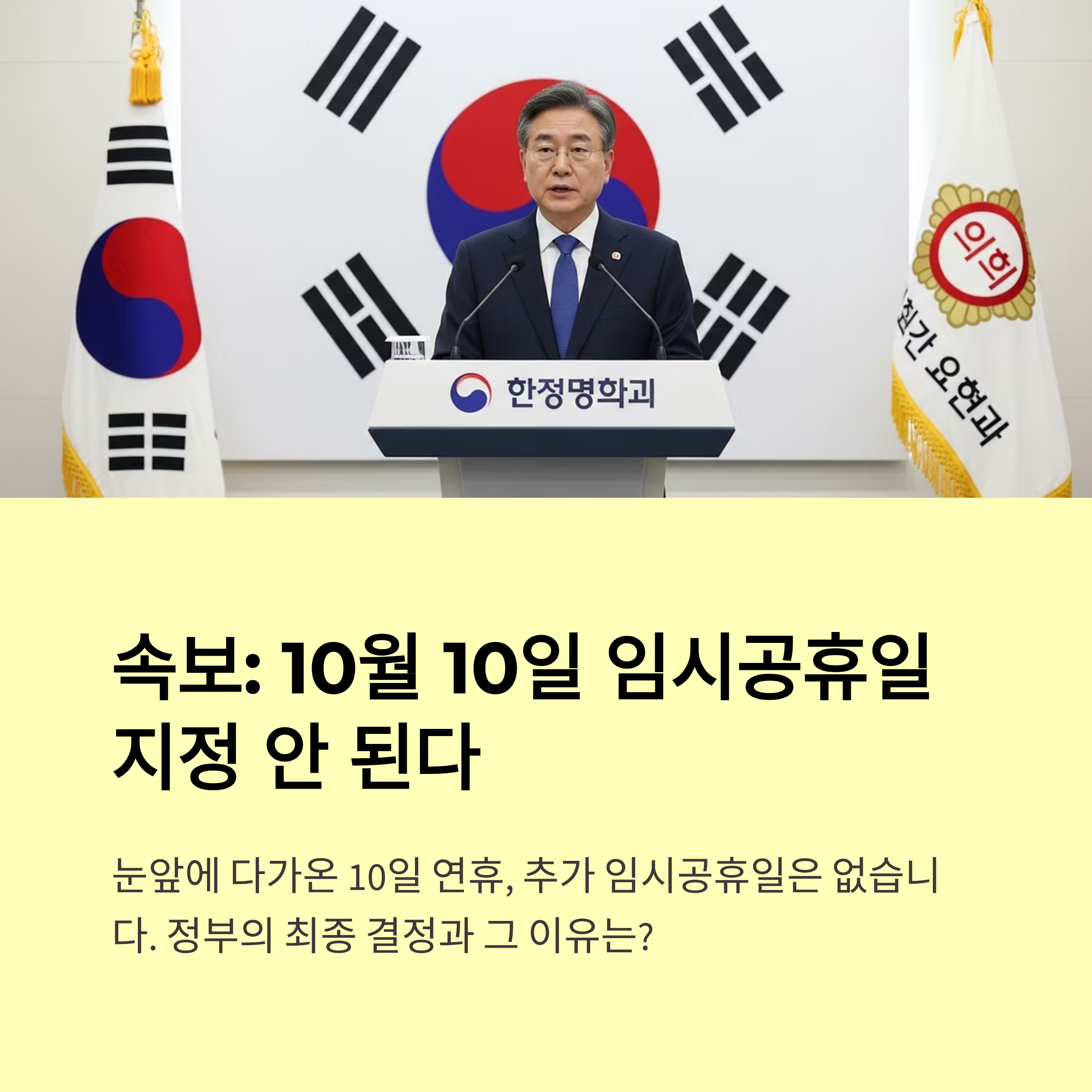 10월 10일 임시공휴일 지정 불가가 확정되면서 국민의 기대와 일부 투자자 및 소비자의 의구심이 교차하고 있으나, 정부는 현실적 상황을 반영한 판단임을 분명히 했습니다. 앞으로 우리 사회가 직면한 내수 활성화와 노동환경 개선이라는 근본 과제를 해결하기 위한 전향적 정책 혁신이 어느 때보다 시급합니다.