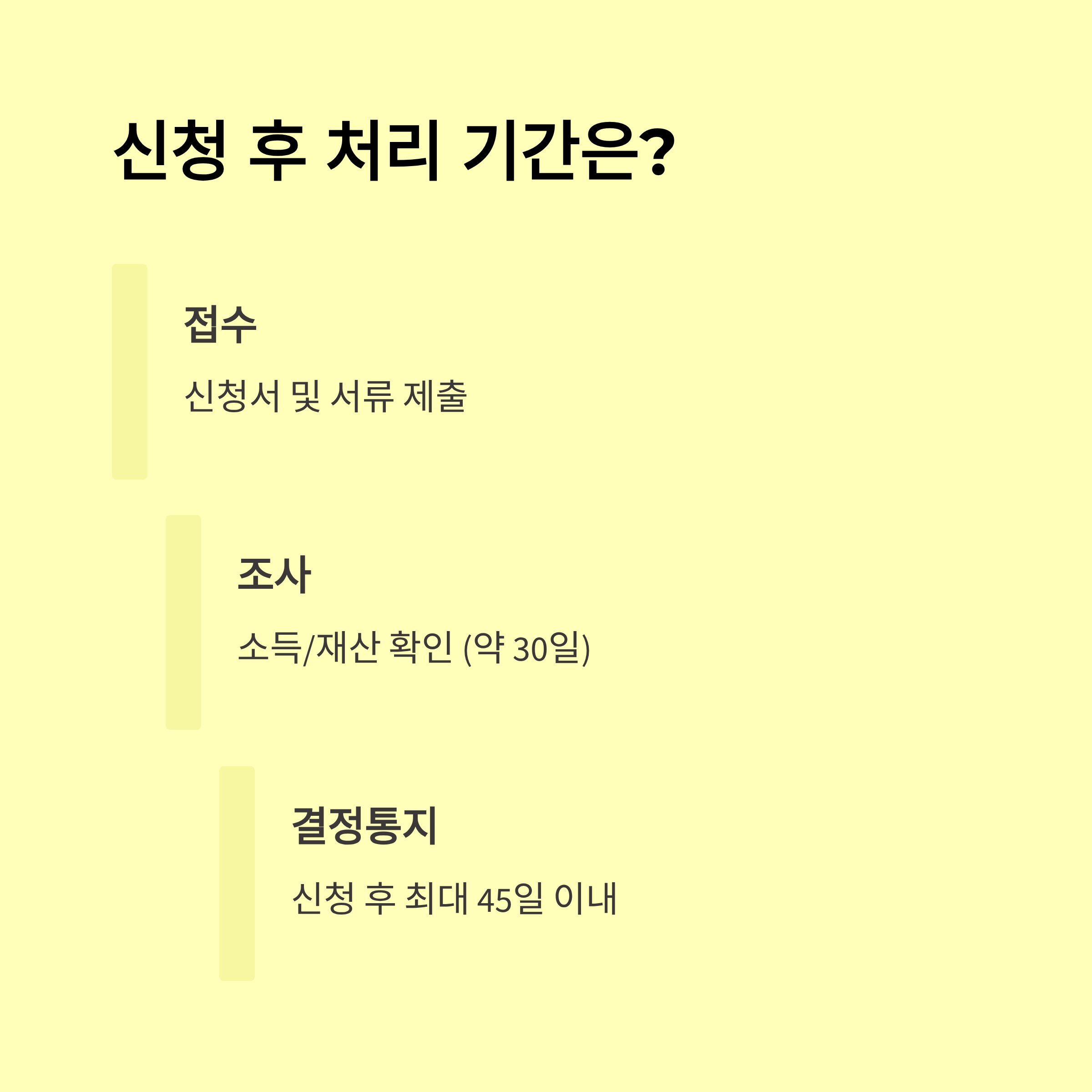 - 필요 서류: 신분증, 통장 사본(계좌번호), 최근 소득 및 재산내역 관련 증빙서류(필요시)