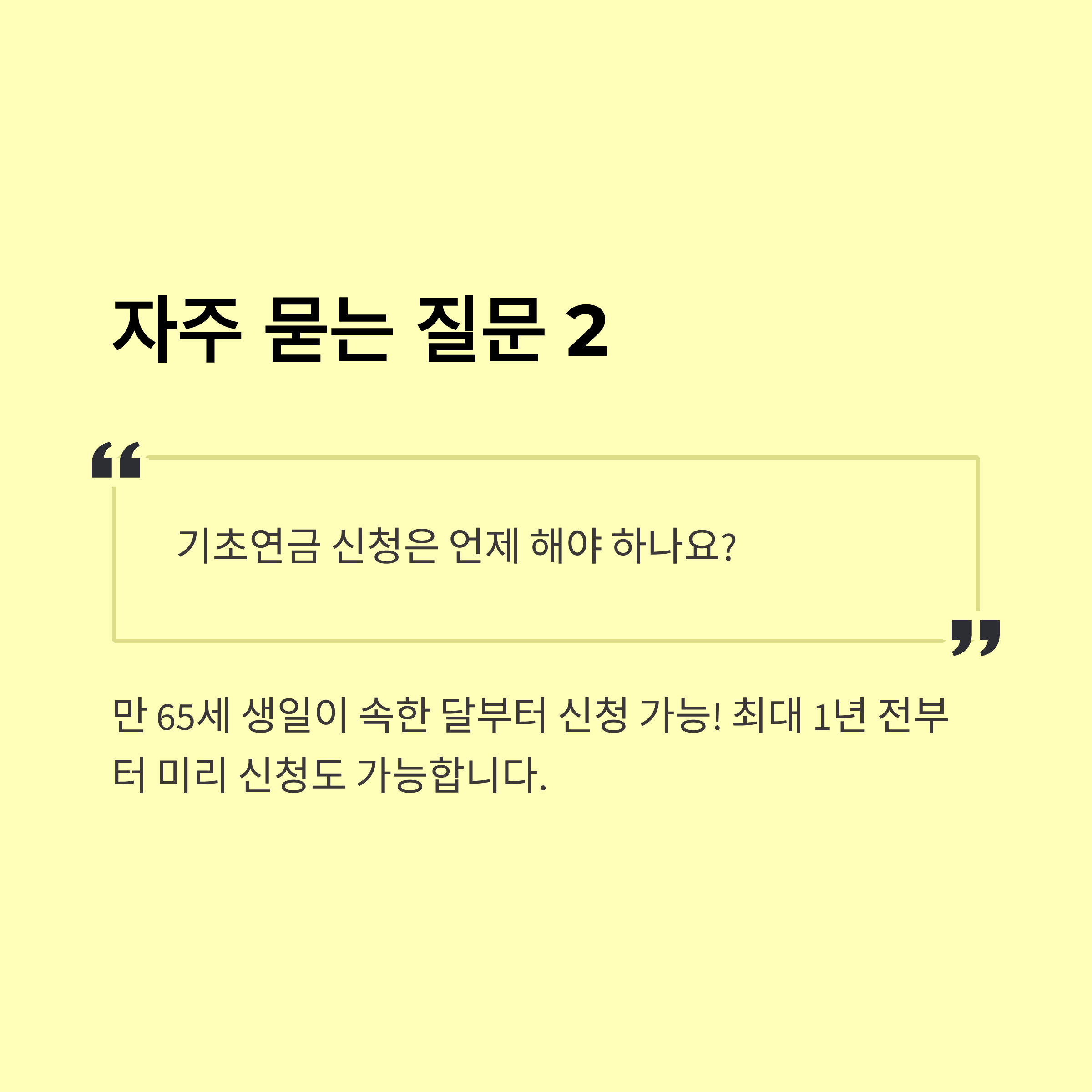 - 만 65세 생일이 지난 시점부터 신청 가능하며, 공휴일이나 주말 관계 없이 신청일 기준 적용