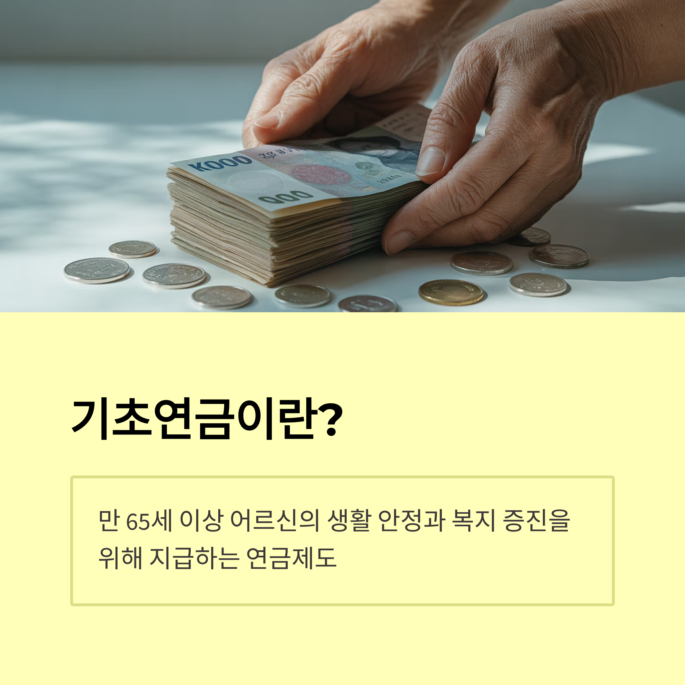 - 기초연금: 65세 이상 노인에게 지급되는 기본 생활안정 연금