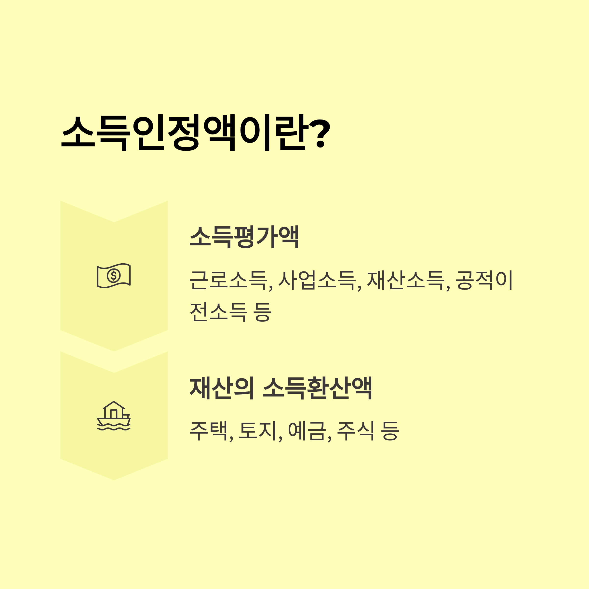 | 월 소득평가액 | 근로·사업·이자·배당·연금·임대수입 등 모든 소득 공제 항목 적용 |