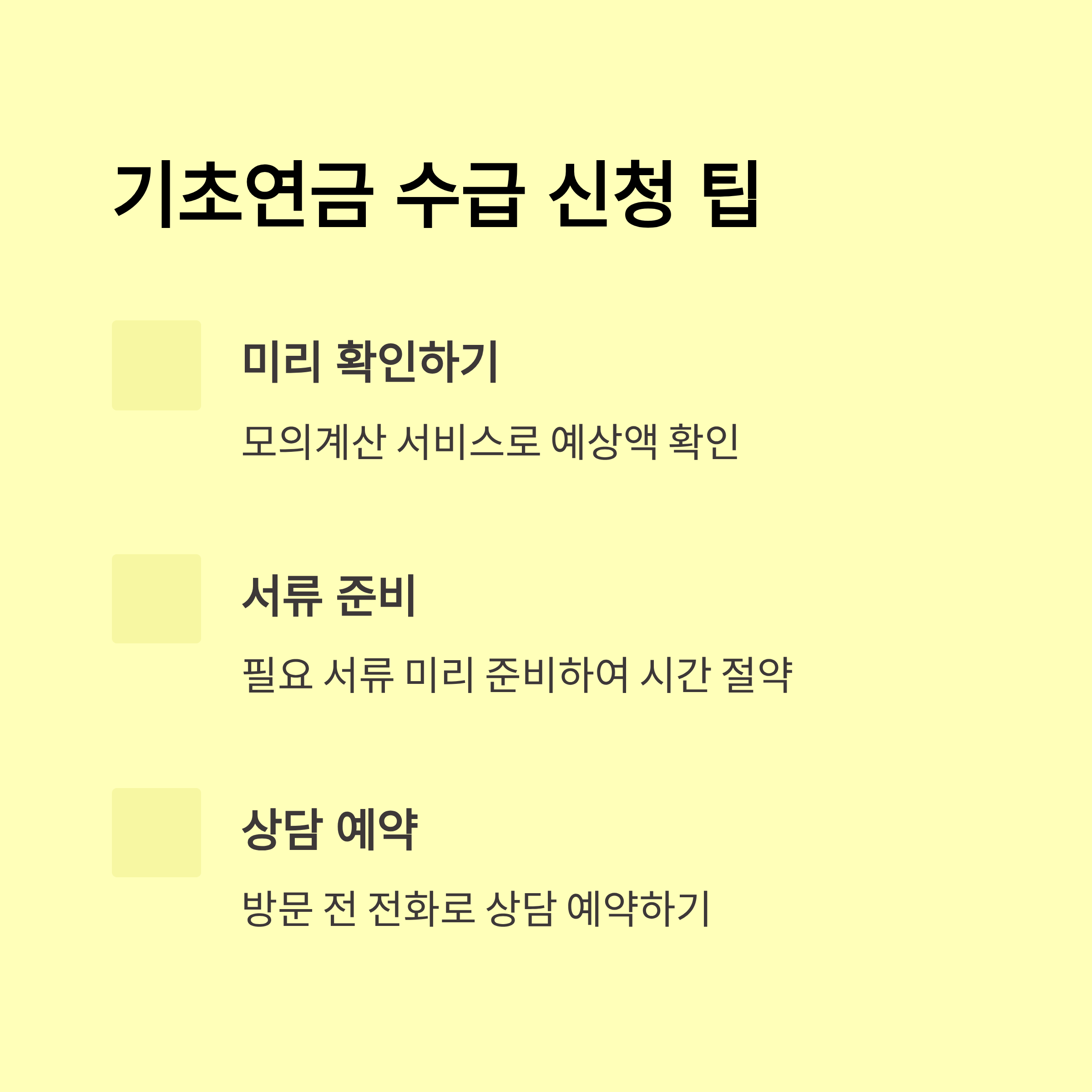 - 교육 및 상담: 국가 및 지자체 주관 기초연금 교육 프로그램과 복지 상담 서비스 이용 가능