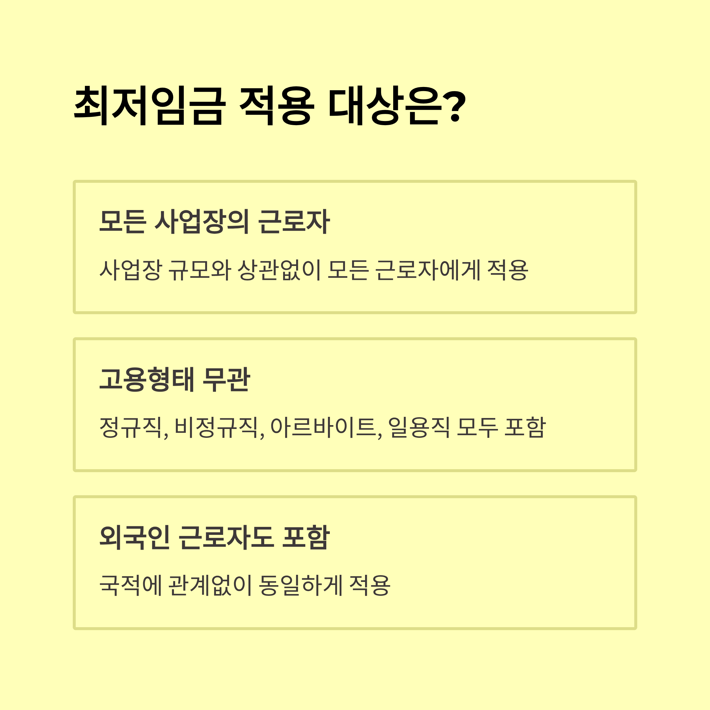 - 특수형태 근로(플랫폼, 프리랜서): 일당/건별 협의, 주휴·보험 적용 관할 별로 상이