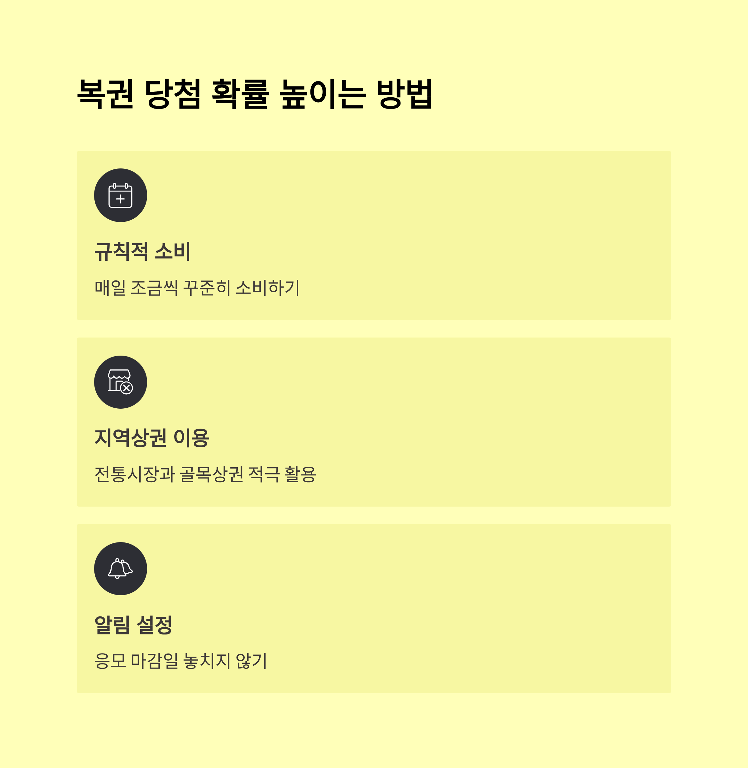 - 복권 당첨금 또는 쿠폰 형태로 지역 가맹점, 소상공인 매장에서 사용할 수 있음