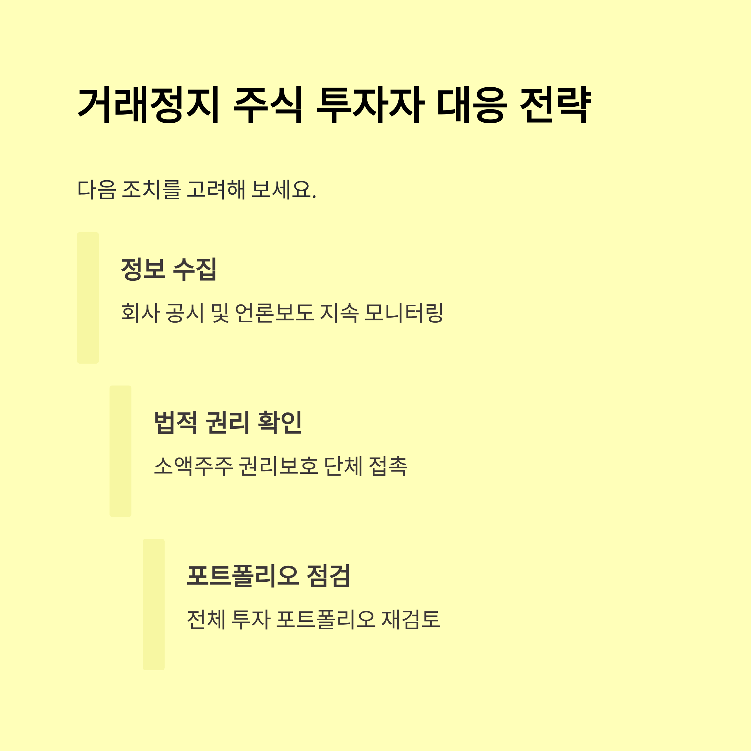 | 1단계 | 거래정지 및 조회공시 요구 |
