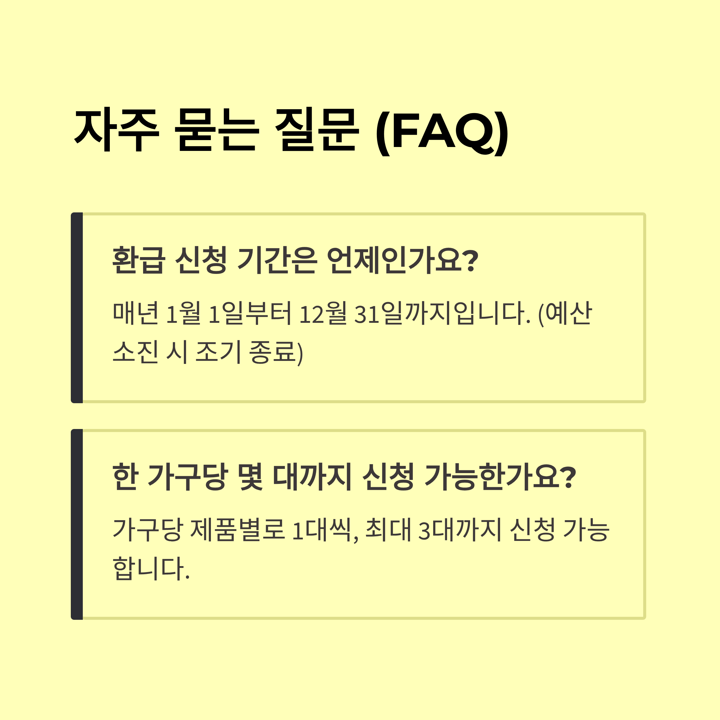 - 환급 절차: 각 품목별 인증·정부 예산 한도 소진까지 선착순 지급