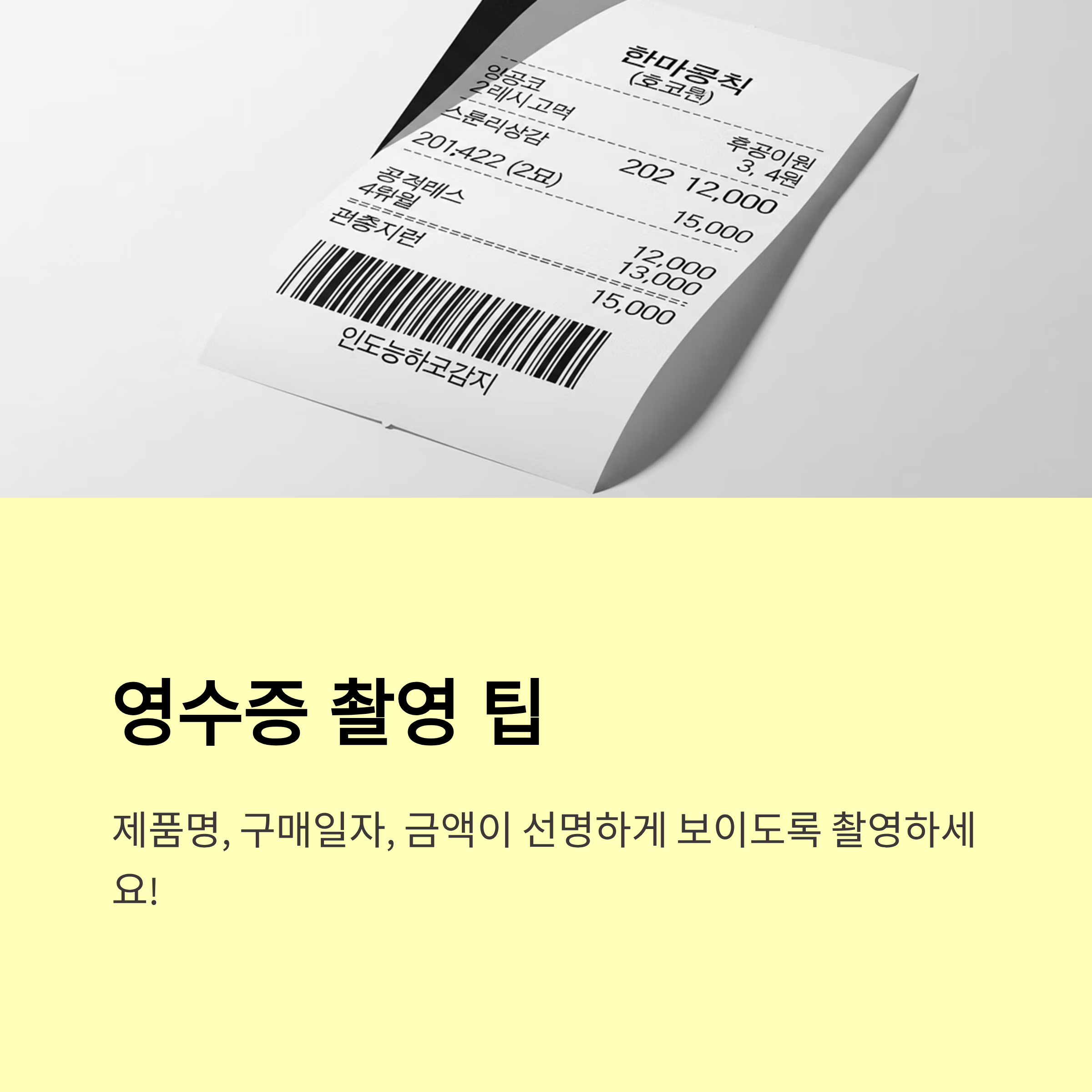 - 영수증/인증서 사진: 글씨·모델명·번호가 선명하게 나온 고화질 촬영 필수